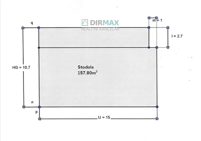 Stodola je s výměrou 157m2, celkem je tedy zastavěná plocha 270m2.