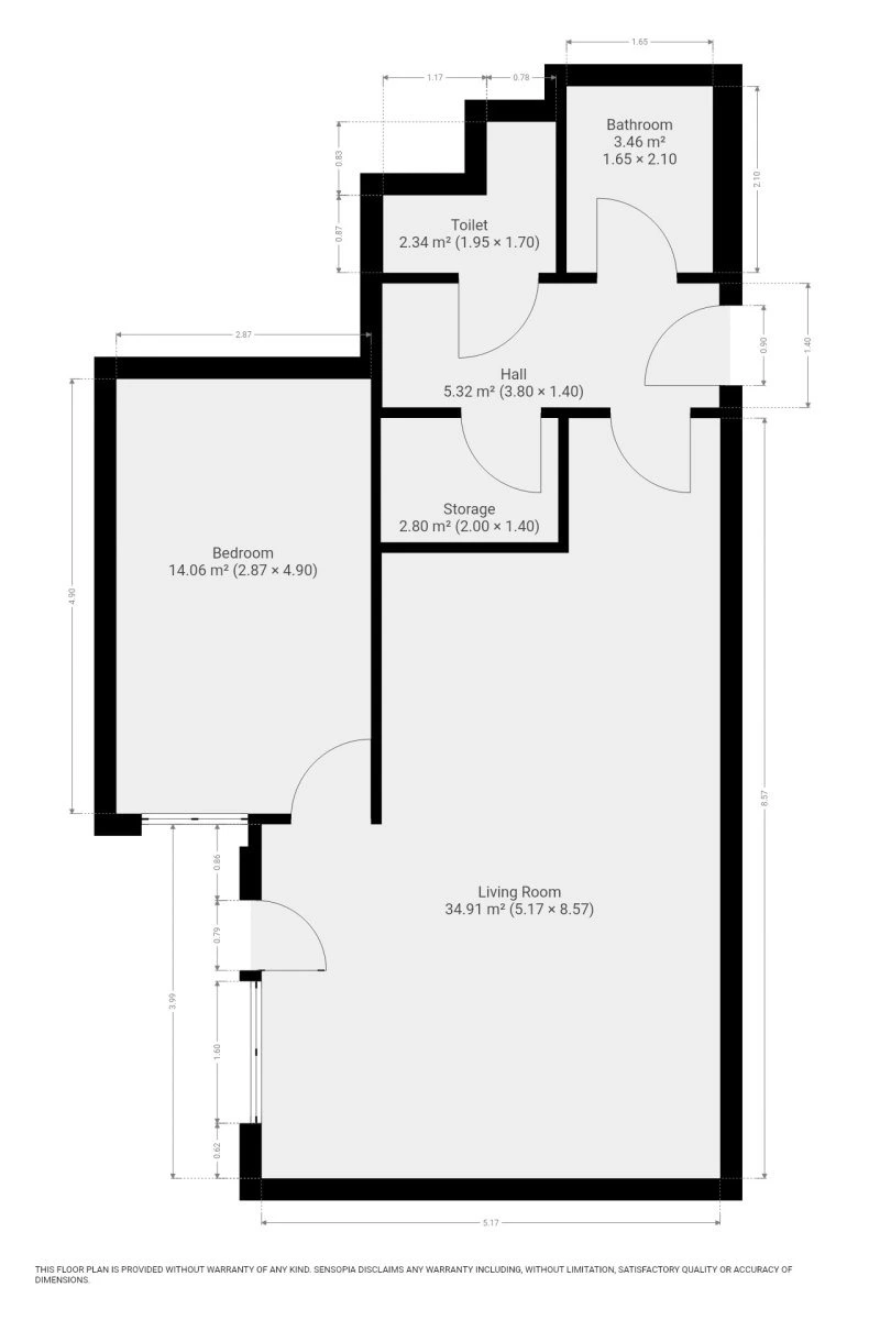 Skládá se ze vstupní chodby zařízené šatní skříní, koupelny zařízené vanou a umyvadlem. Toaleta je umístěna samostatně, kde je také pračka. Přímo v bytě se nachází velmi prostorná komora.