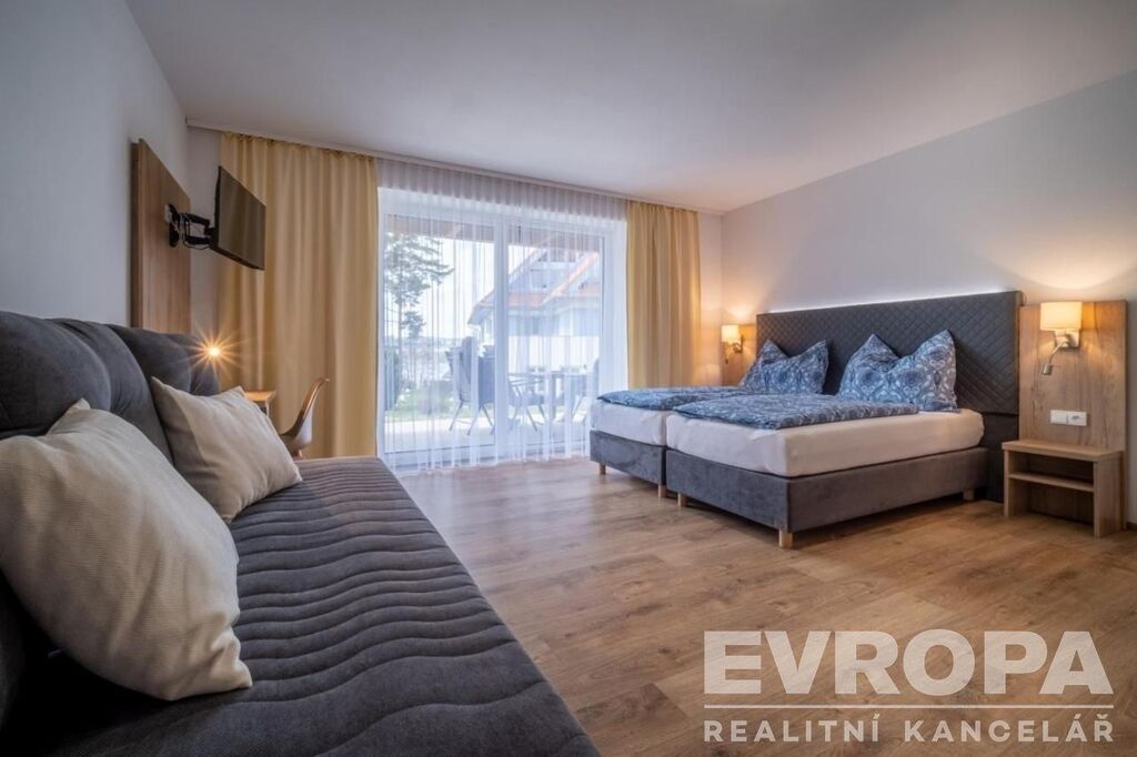 Prodej plně vybaveného bytu  apartmánu v Lipně nad Vltavou, dispozice 1+kk, plocha 42m2 + terasa 16,5m2.