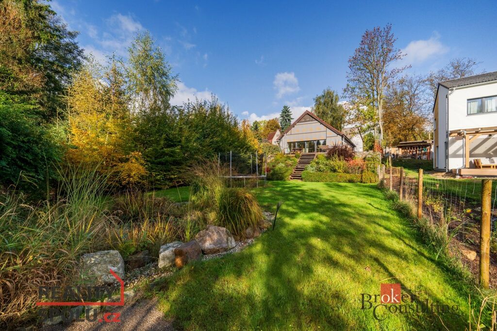 -zahradu tak akorát: je dost velká na hraní pro děti, trampolínu nebo posezení u ohně, ale ne tak moc, aby vám její údržba brala drahocenný čas, který chcete využít po svém. Výměra 728m2