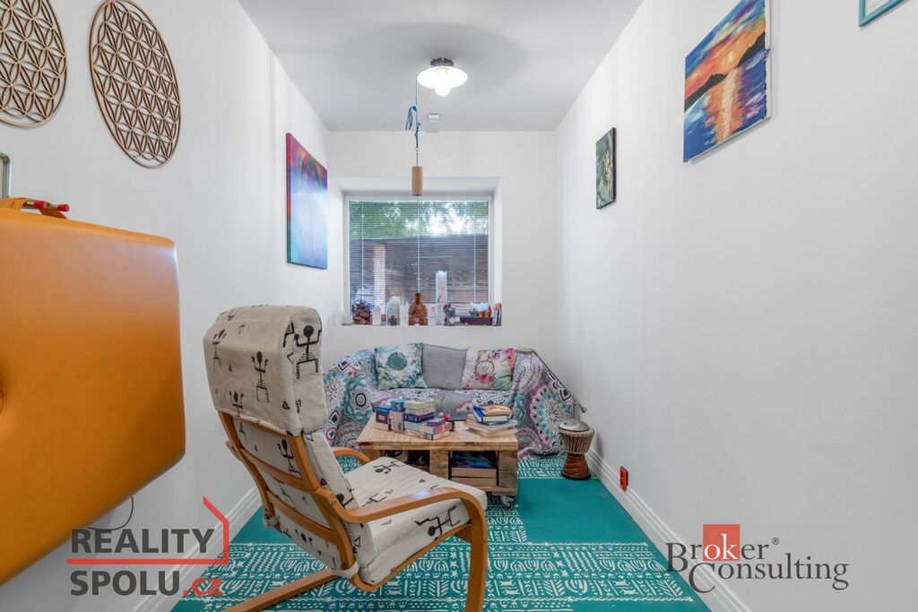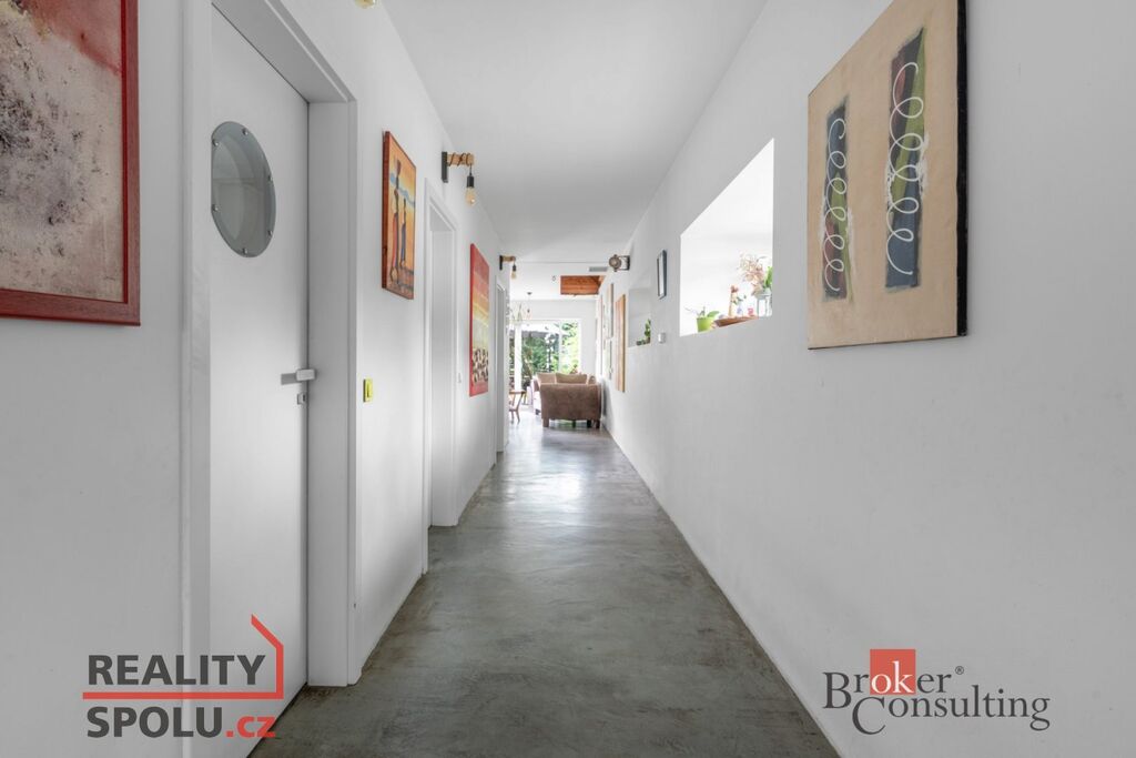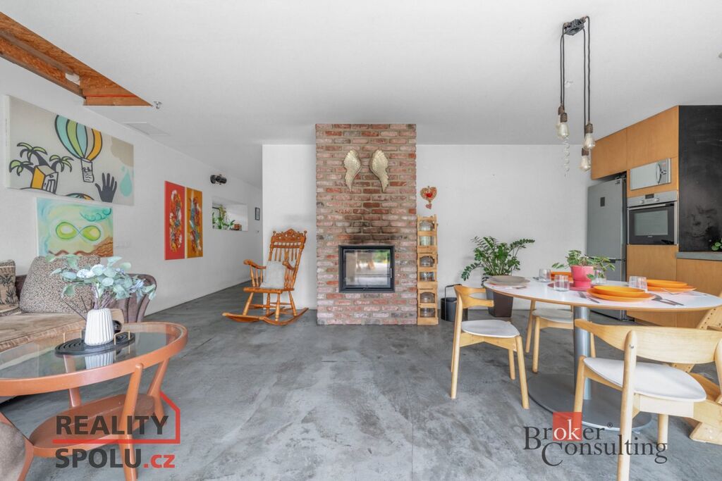 -dům, který má styl: kombinace přiznaného betonu, dřeva a barevných detailů vytváří originální atmosféru. Dispozičně je to 4kk s praktickou šatnou a technickou místností se sprchou pro očistu miláčka. Ať už jím je čtyřnohý kamarád nebo milované kolo. Podlahová plocha přízemí 129 m²
