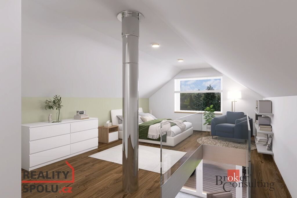 A tady se otevírá svět možností. Podkroví ještě není dokončené – a právě v tom je to kouzlo. Už je tu příprava na vlastní vstup, takže si ho můžete proměnit na luxusní loftovou ložnici s výhledem do zeleně, šatnou a pracovnou nebo spojte bydlení a podnikání a vytvořte zde ateliér, cvičební studio, ordinaci nebo kancelář. Možností je i samostatná bytová jednotka. Třeba pro náctileté dítě, rodiče nebo pasivní příjem z pronájmu