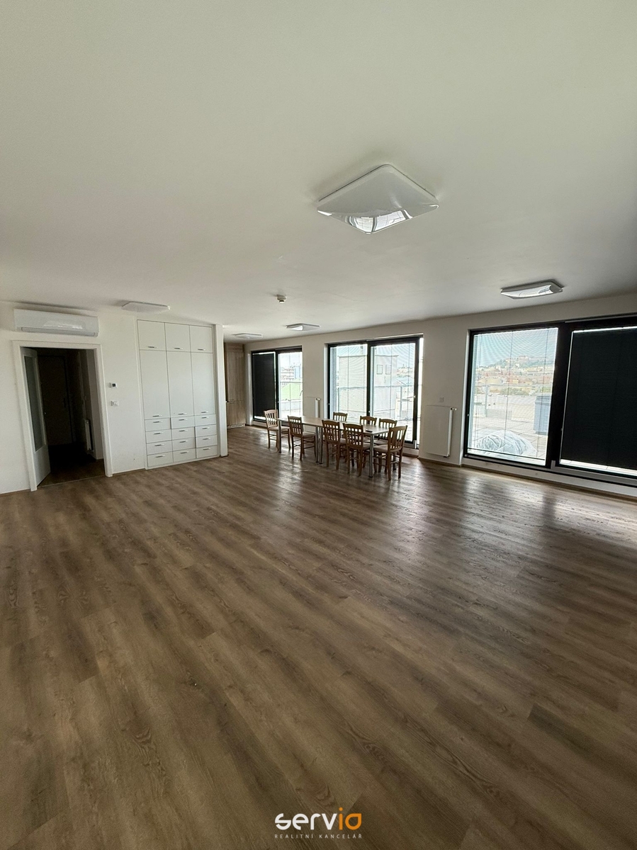 Nabízíme exkluzivně pronájem bytu 4+kk s prostornou terasou, vířivka (výhled na dominanty Brna – Petrov, Špilberk) v 8.NP s výtahem o velikosti 149 m2 (včetně 39,98 m2 terasy), se sklepem a možností i pronájmu krytého PS v objektu Rezidence Hvězdová, polyfunkční dům obklopený městským parkem, odkud je to na brněnské náměstí Svobody procházkou deset minut.