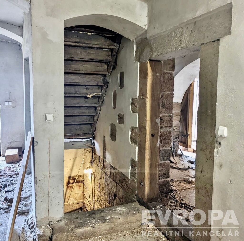Nádvoří domu je pokryto původní kamennou dlažbou (kočičí hlavy). Kdysi toto nádvoří mívalo i vlastní fontánu, která byla napojená na studánku, situovanou ve sklepních prostorách domu, a zároveň také na přilehlé jezírko. To vše lze znovu obnovit. Konstrukce stavby je z precizně opracovaných pískovcových bloků, včetně všech dveřních portálů. Stropní konstrukce v přízemí domu tvoří původní zakřivená klenba. Z boku domu je nově přistavěná dřevěná terasa pod stínem desítky metru vysoké a více jak sto let staré lípy. Sklepení domu je tvořeno pískovcovými kvádry a klenutými stropy, je zde také vlastní studánka, která se využívá jako zdroj vody pro celý objekt. Do nemovitosti je zavedena elektřina a odpady mohu být řešeny ČOV se vsakem na pozemek. Majitelé do kupní ceny nemovitosti zahrnuli stavební materiál: dubové trámy a střešní krytinu z břidlice. Určitě Vám doporučuji nemovitost osobně navštívit a načerpat kouzlo tohoto místa. Video prohlídka, ani fotky Vám nezprostředkují to co živý prožitek. Pro bližší informace prosím kontaktujte makléře.