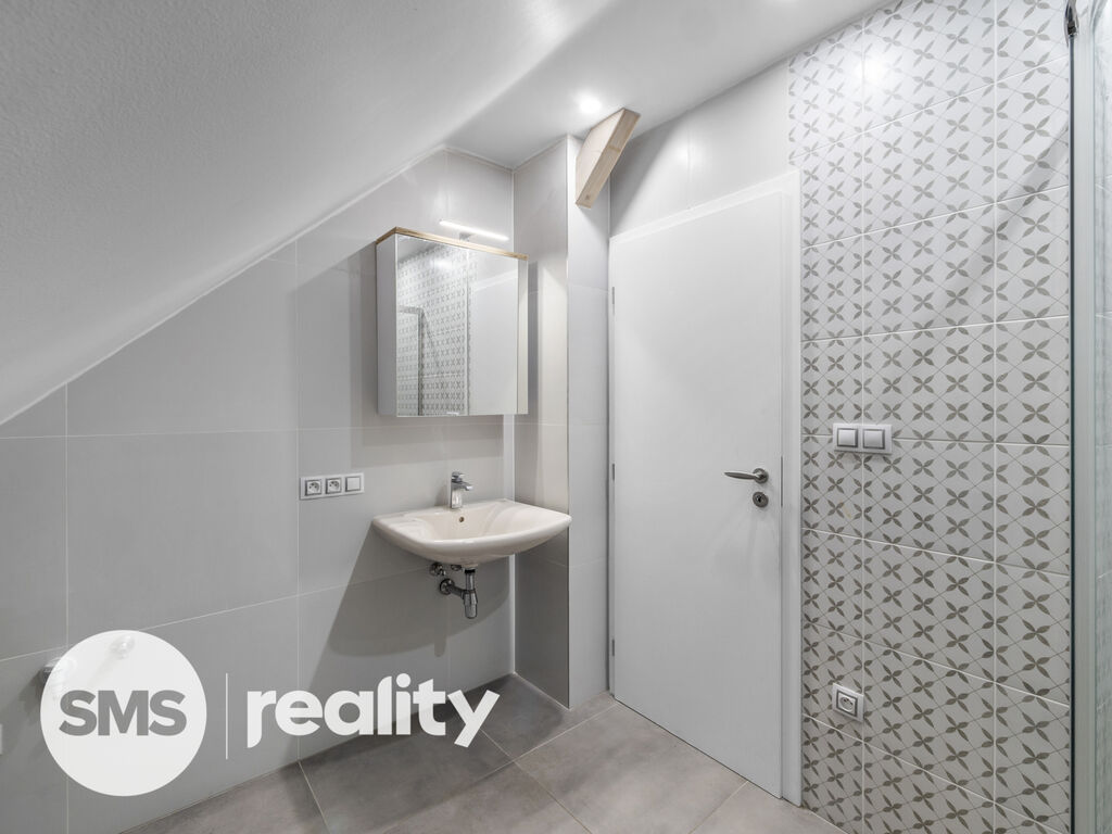 Byt je vytápěn podlahovým topením, které zajišťuje příjemný tepelný komfort. V horním podlaží se nacházejí tři pokoje a menší skladový prostor v podkroví domu.