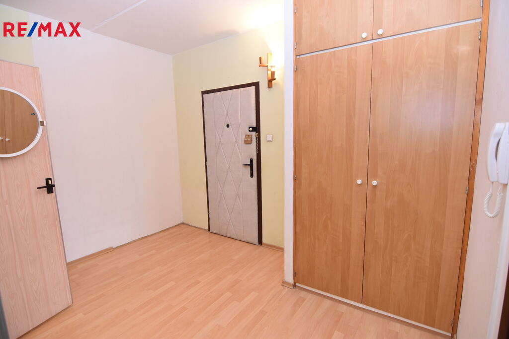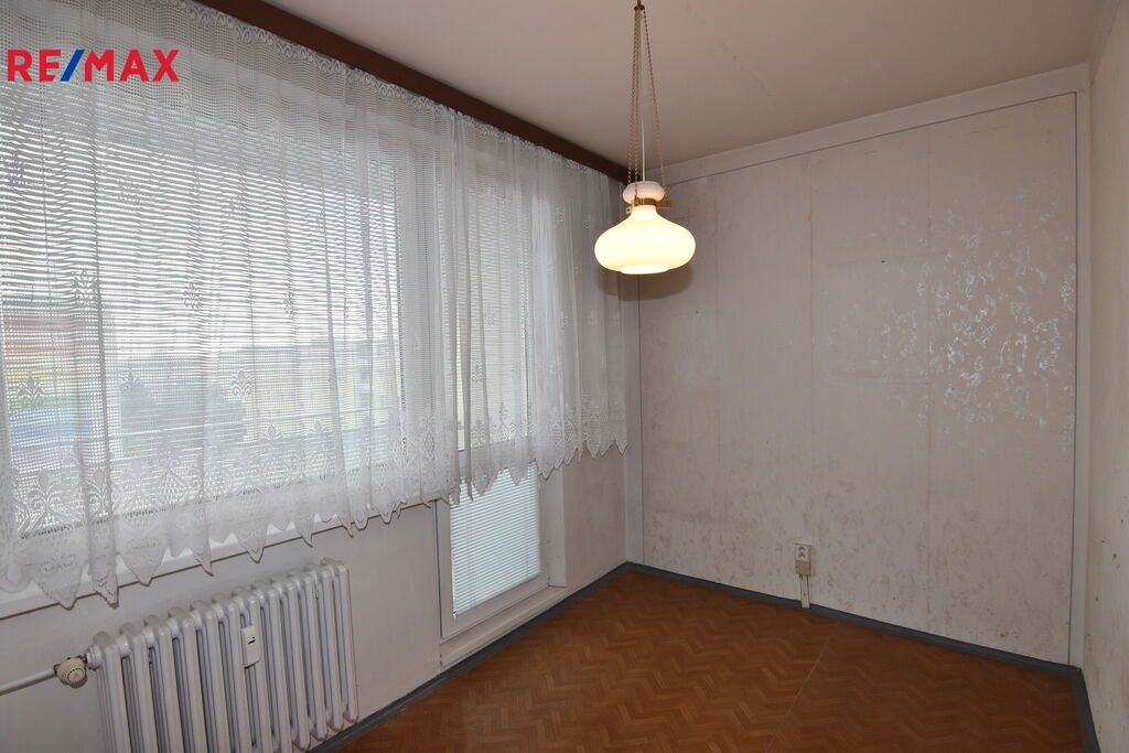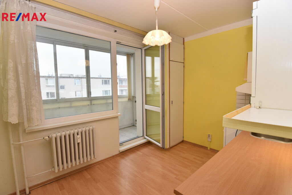 Nabízíme exkluzivně k prodeji byt před rekonstrukcí dispozičně 3+1 se třemi lodžiemi o užitné ploše 64 m². Tento byt se nachází v 6. patře. K bytu náleží sklepní kóje a v domě jsou dva výtahy. Do bytu se vchází prostornou chodbou 8,4 m2 kde je i vstup do koupelny 2,6 m2 a WC 0,9 m2. Po levé straně obývací pokoj 20,4 m2 s lodžií a na něj navazuje ložnice 8,1 m2 s lodžií. Kuchyně 9,7 m2 se nachází v části za koupelnou, také s lodžií a po levé straně je třetí pokoj 12 m2.