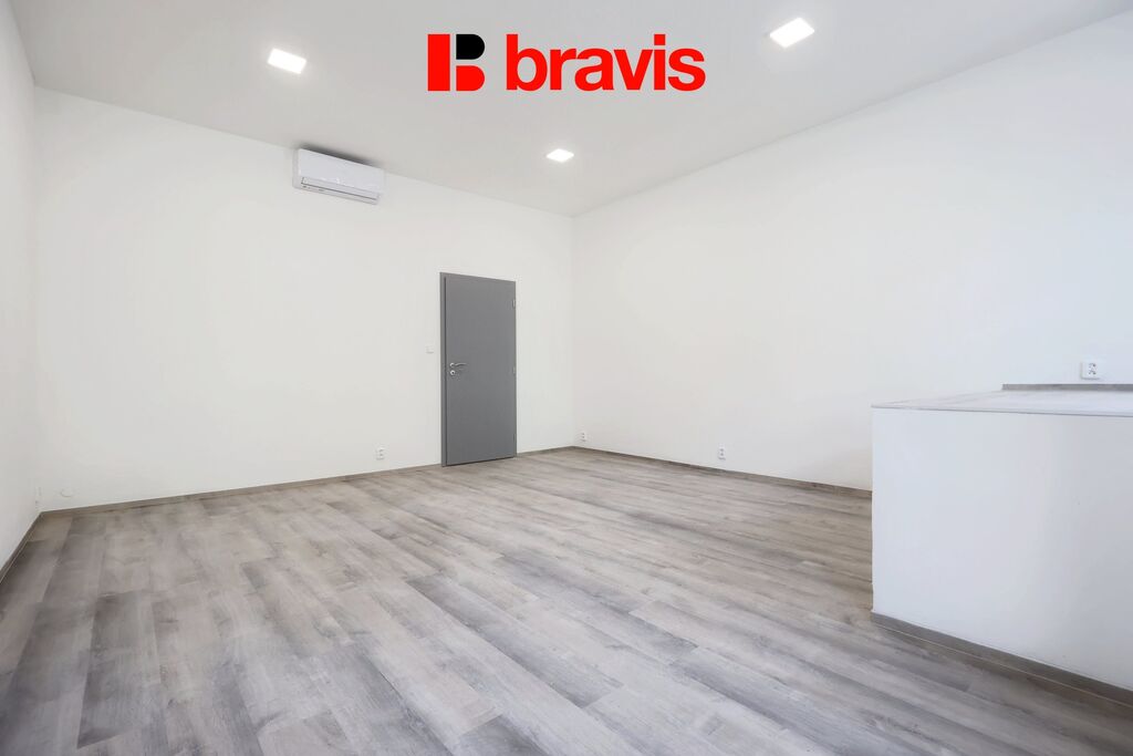 Velkou výhodou jsou výlohy směřující do rušné komunikace a celý prostor je po kompletní opravě.