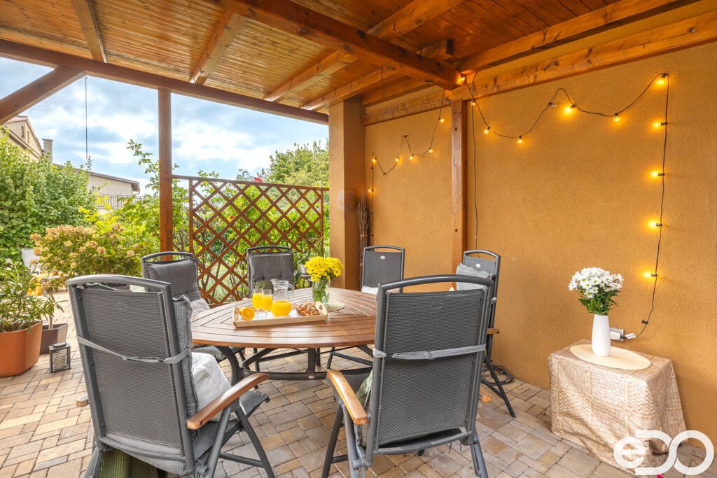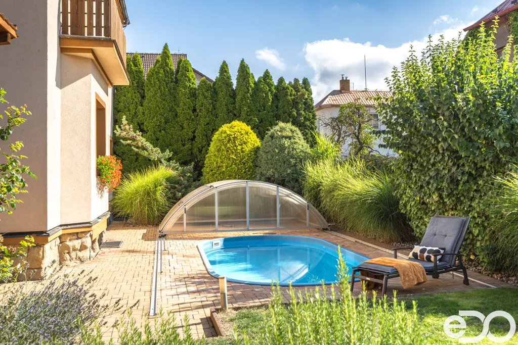 Celková plocha parcely činí 654m², což poskytuje dostatek prostoru pro vaše děti, aby si mohly hrát venku a pro vás, abyste si mohli vychutnat čas strávený s rodinou. Na zahradě je prostorná pergola, krytý bazén a zahradní domek. Zahrada je ve velmi pěkném a udržovaném stavu a poskytuje maximální soukromí.