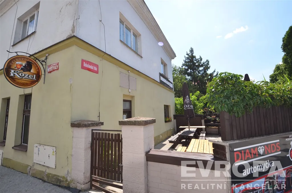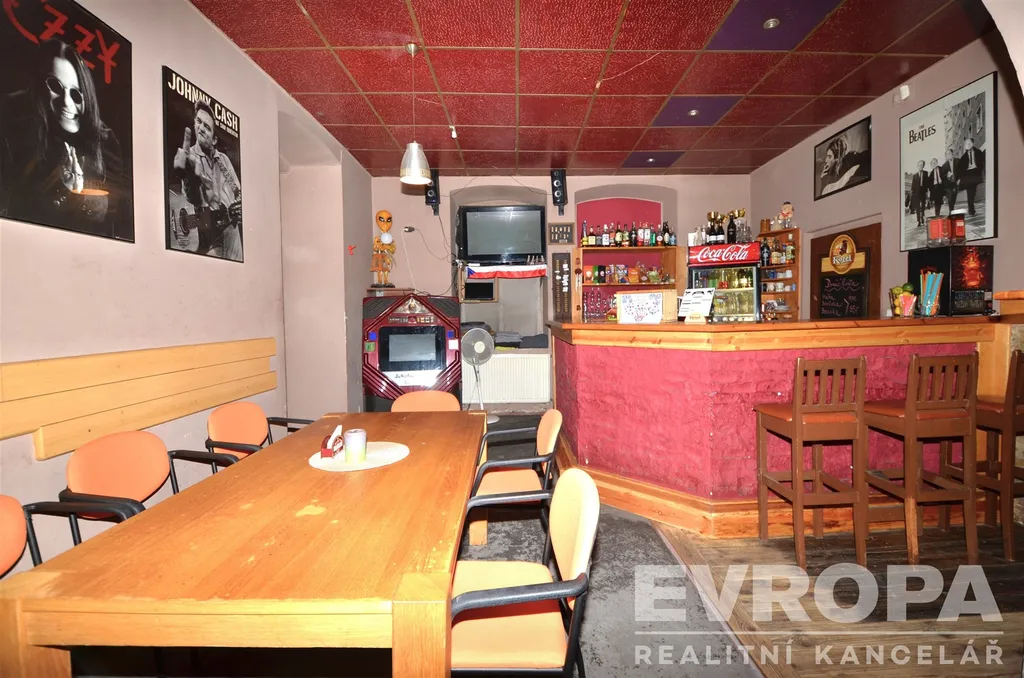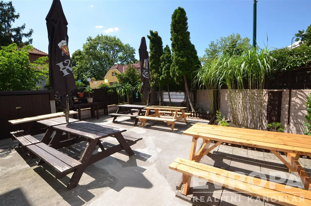 V přízemí se nachází zkolaudovaný restaurační provoz, s veškerým zázemím (bar, kuchyně, toalety), prostor je momentálně pronajatý a nájemce využívá také prostory v suterénu a venkovní zahrádku.