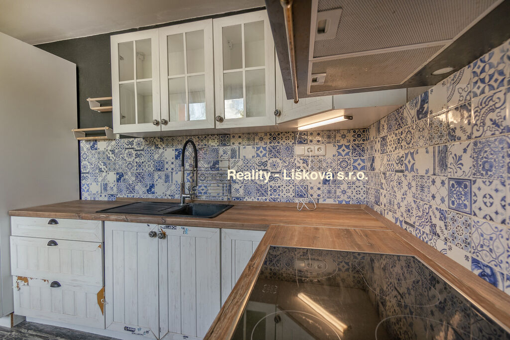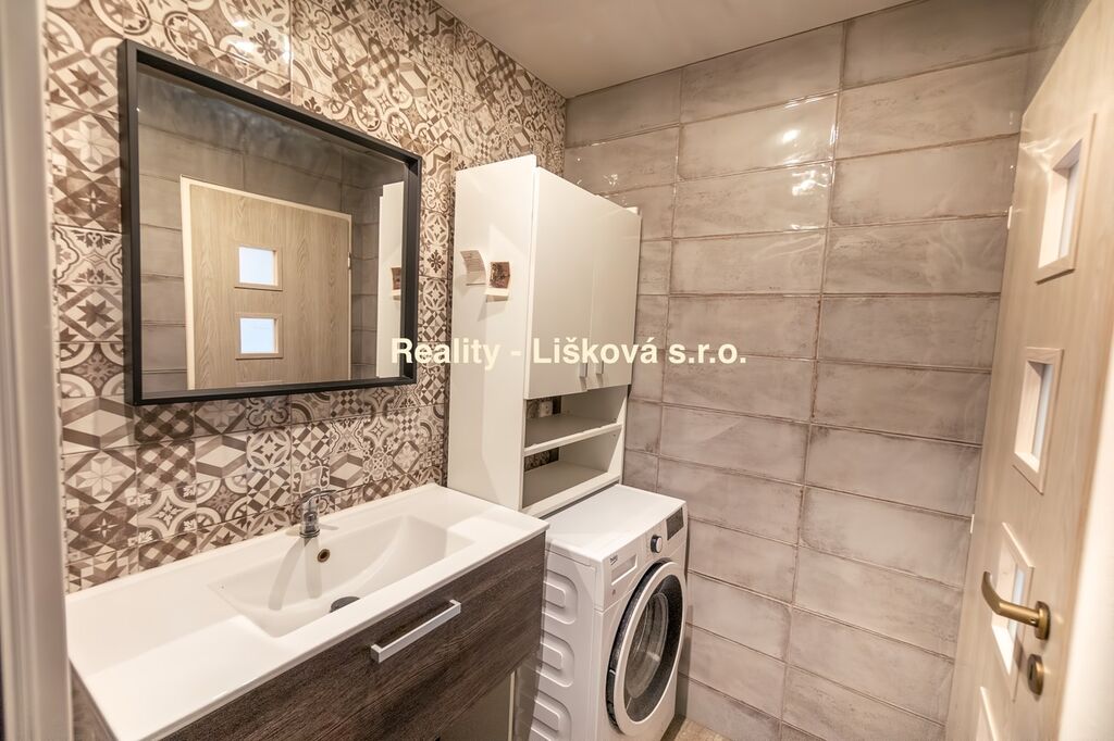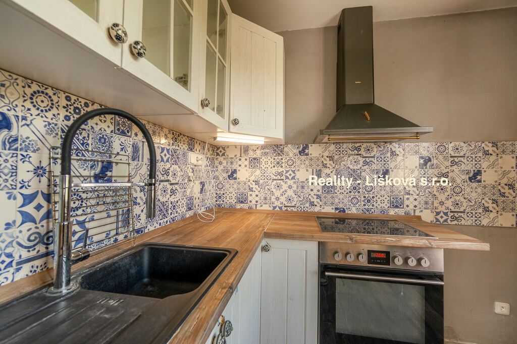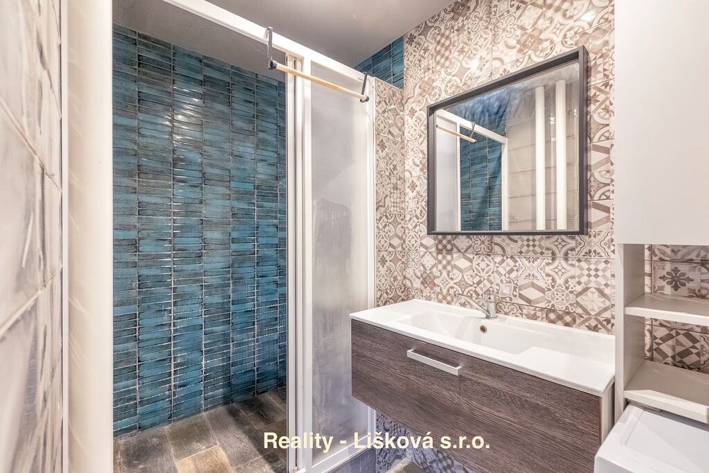 Byt disponuje zděnou koupelnou se sprchovým koutem, v kuchyni je v kuchyňské lince vestavná el. trouba a sklokeramická varná deska.