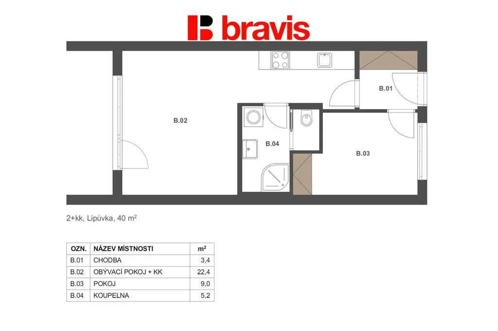 Ve výhradním zastoupení developera nabízíme k prodeji novostavbu ateliéru o dispozici 2+kk (1B) a užitné ploše 40,8 m² v obci Lipůvka u Brna. Ateliér nabízí prostornou obytnou část s kuchyňským koutem o vel. 22,4m2, ložnici ( 9m) chodbu, která nabízí dostatek prostoru pro vestavěný nábytek (3,4m2) a koupelnu (5,2 m2).