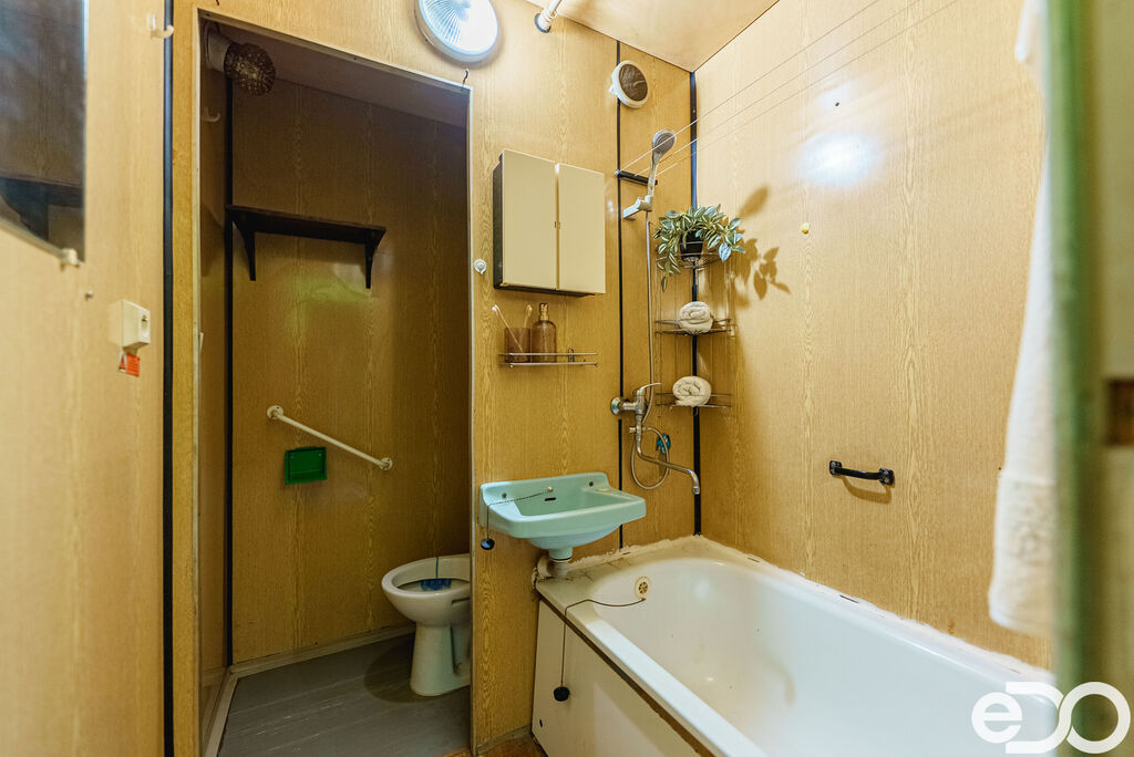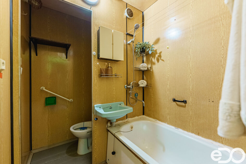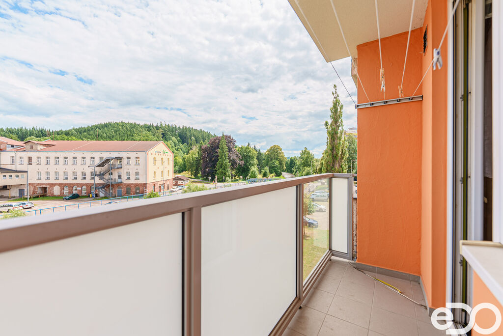 Byt o ploše 50 m² se nachází ve 2. patře panelového domu s výtahem. Kuchyně je dostatečně prostorná na to, aby pojala i jídelní kout a obytnou část – ideální pro ranní kávu i večerní večeři ve dvou. Z kuchyně vede vstup na balkon s výhledem na řeku, který zve k relaxaci.