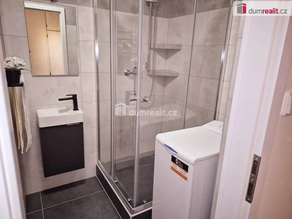 V koupelně je nově vybudované koupelnové jádro se sprchovým koutem. Z chodby se dostaneme do kuchyně a obývacího pokoje a na druhou stranu do ložnice, pokoje tedy nejsou průchozí. Byt je částečně zařízený a vhodný pro 2-3 osoby.