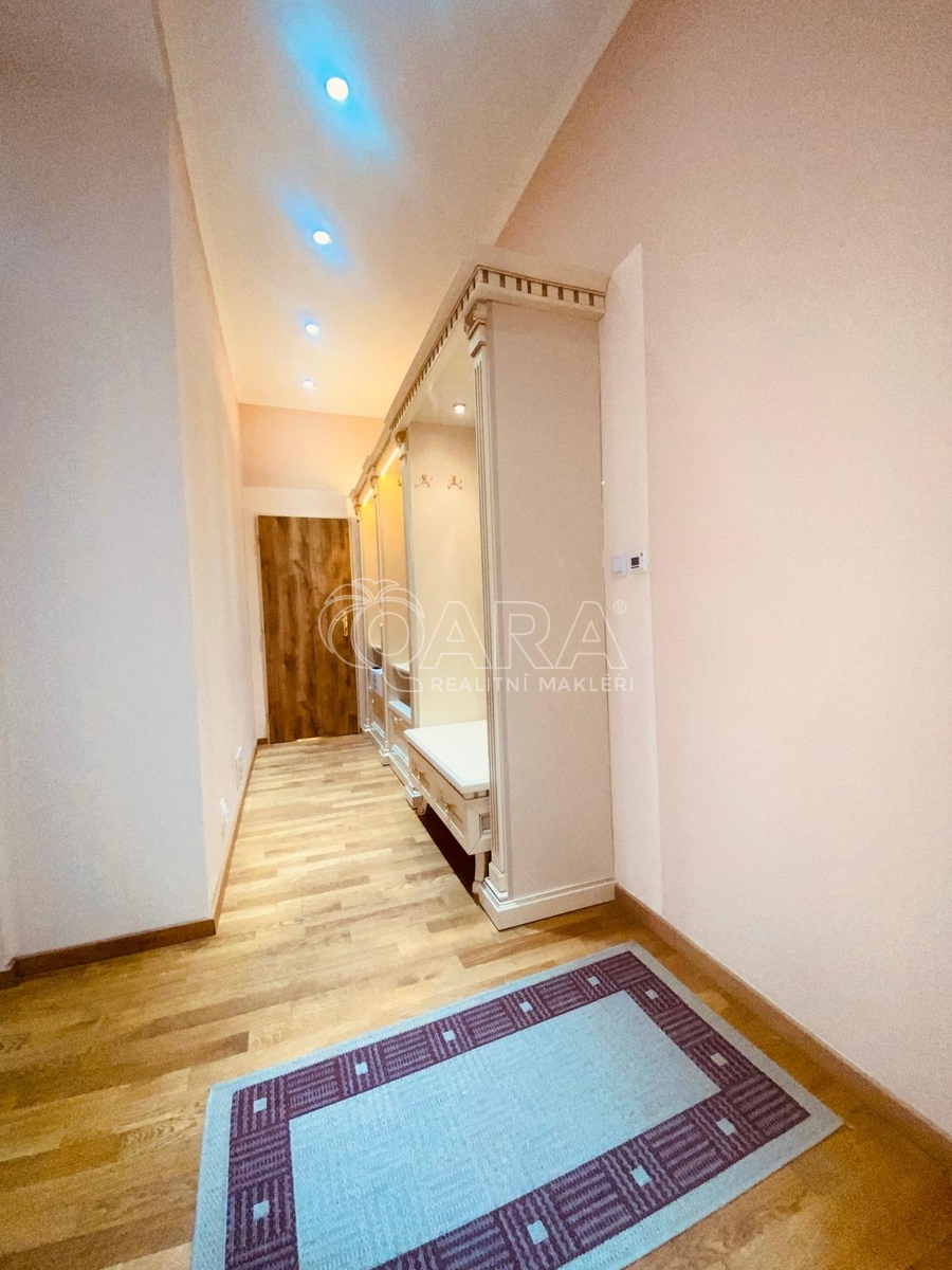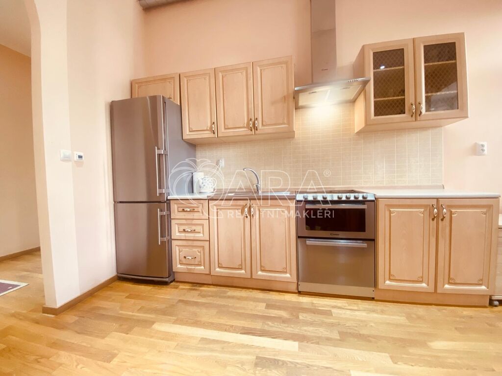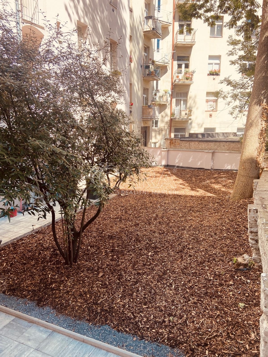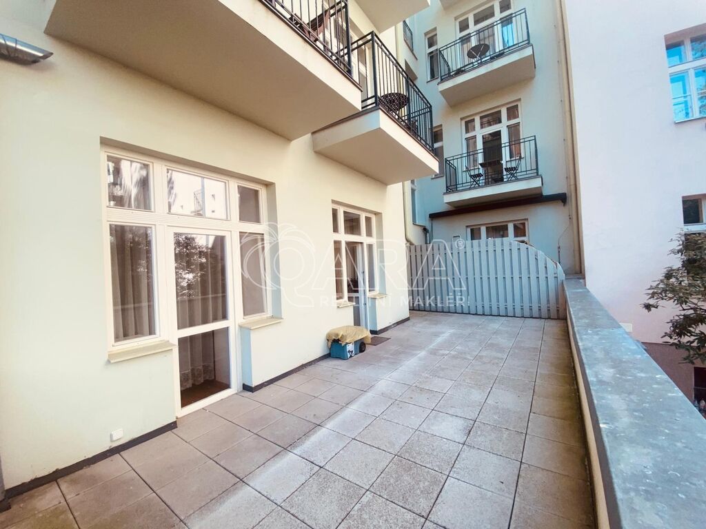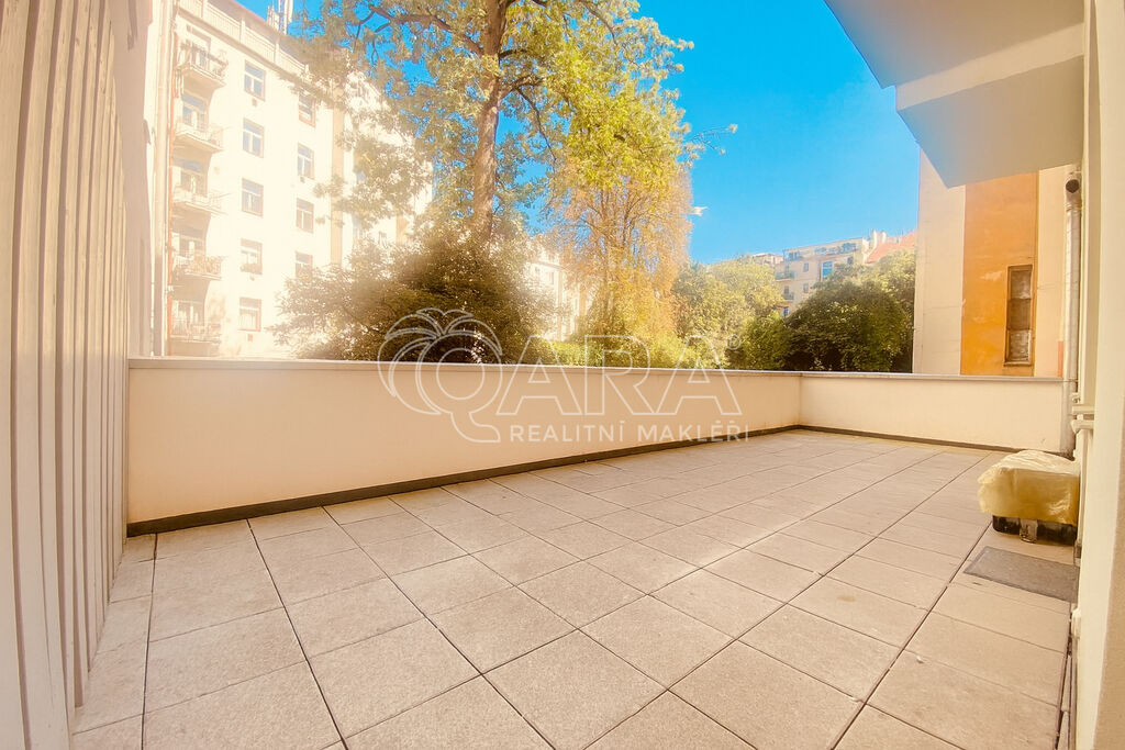 Celý byt 105m² plus 33m² terasa jsou orientované do klidného, uzavřeného vnitrobloku plného zeleně.