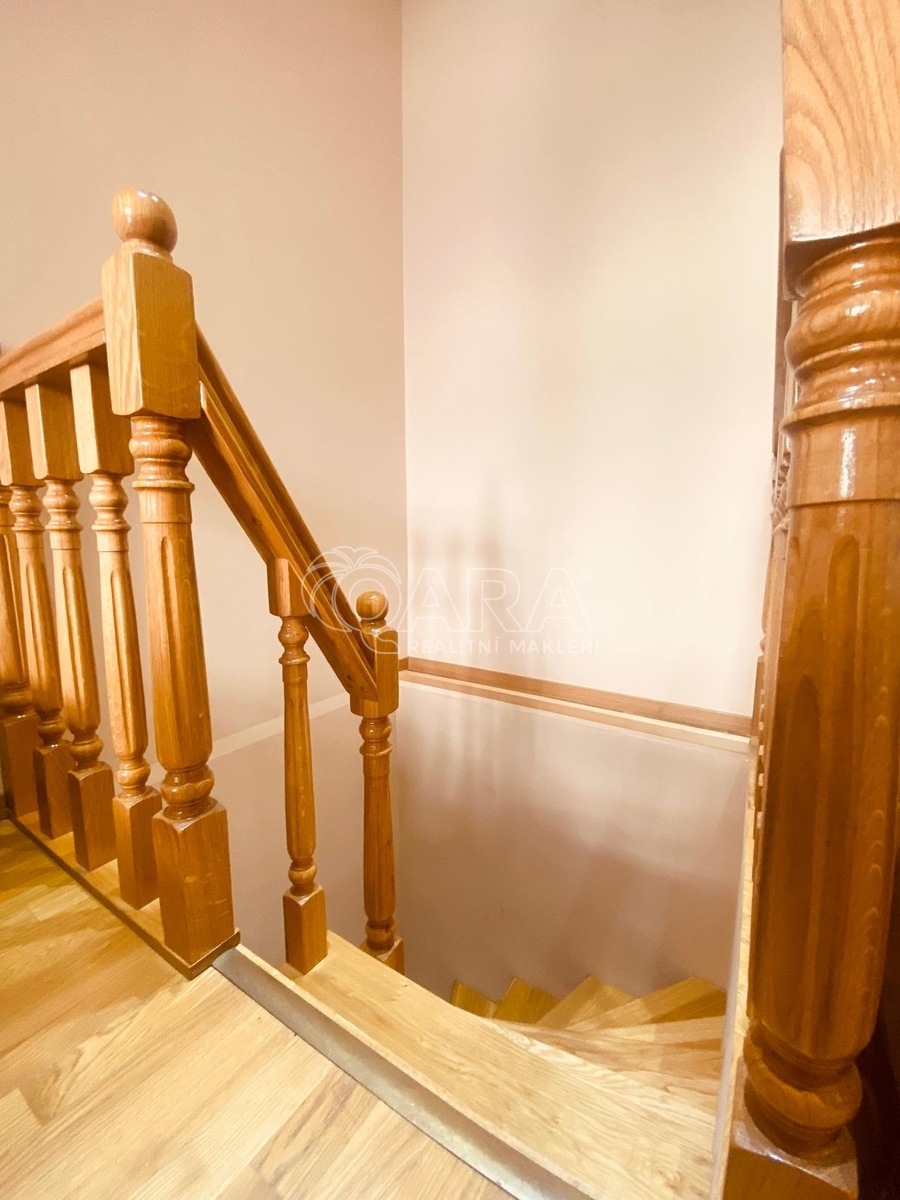 Horní podlaží: světlý obývací prostor s plně vybavenou kuchyní, ložnice se vstupem na terasu, koupelna s vanou a WC, předsíň.