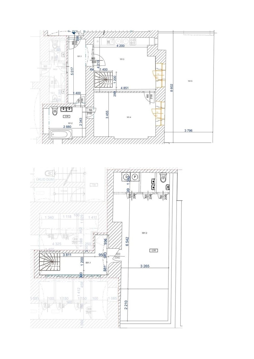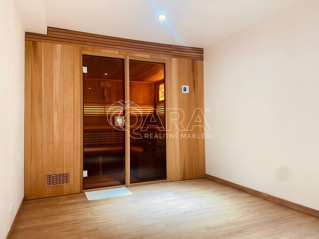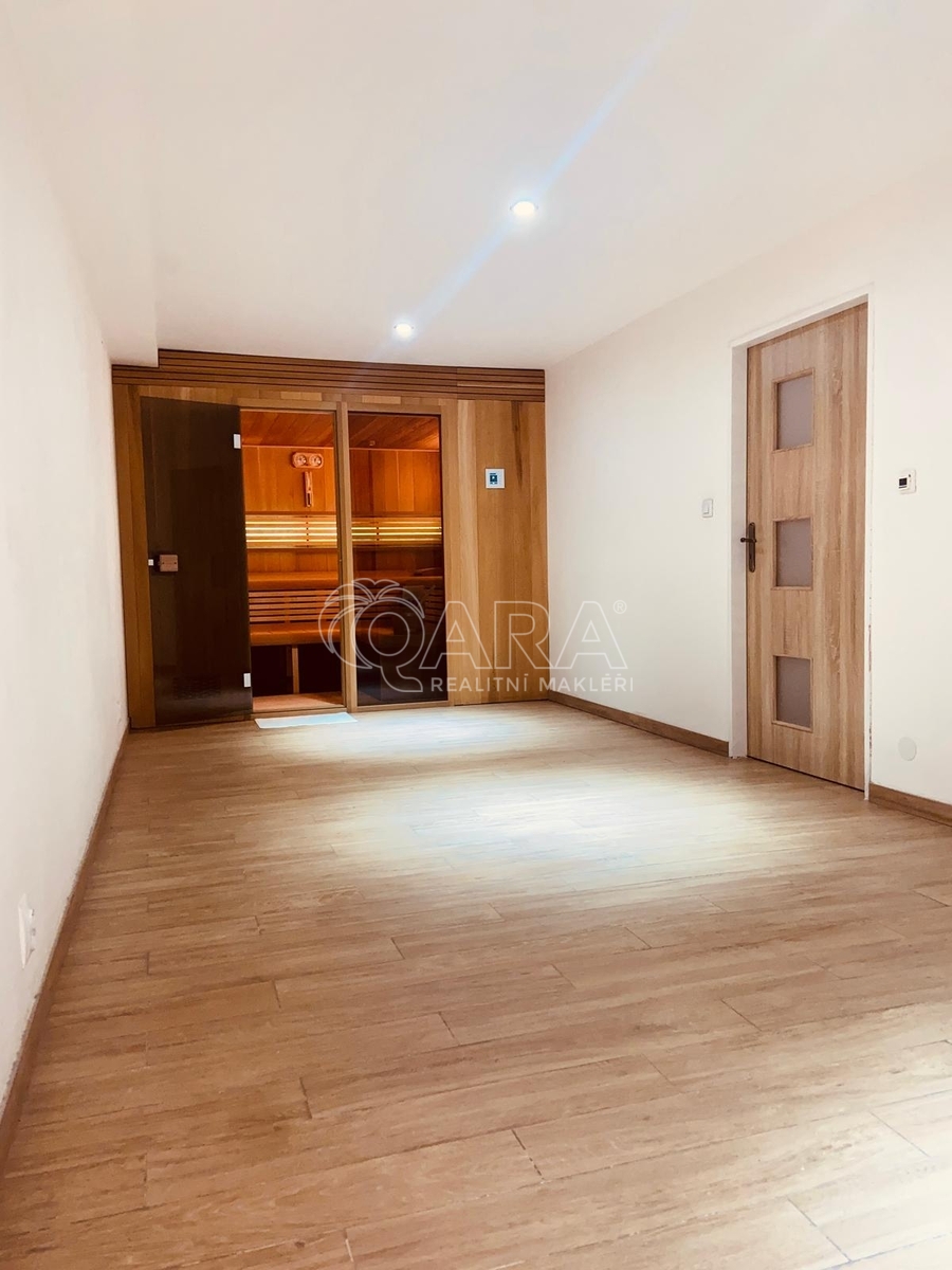 Spodní podlaží: místnost se saunou, sprchou, samostatnou toaletou, prádelna, skladové prostory, úklidová místnost.