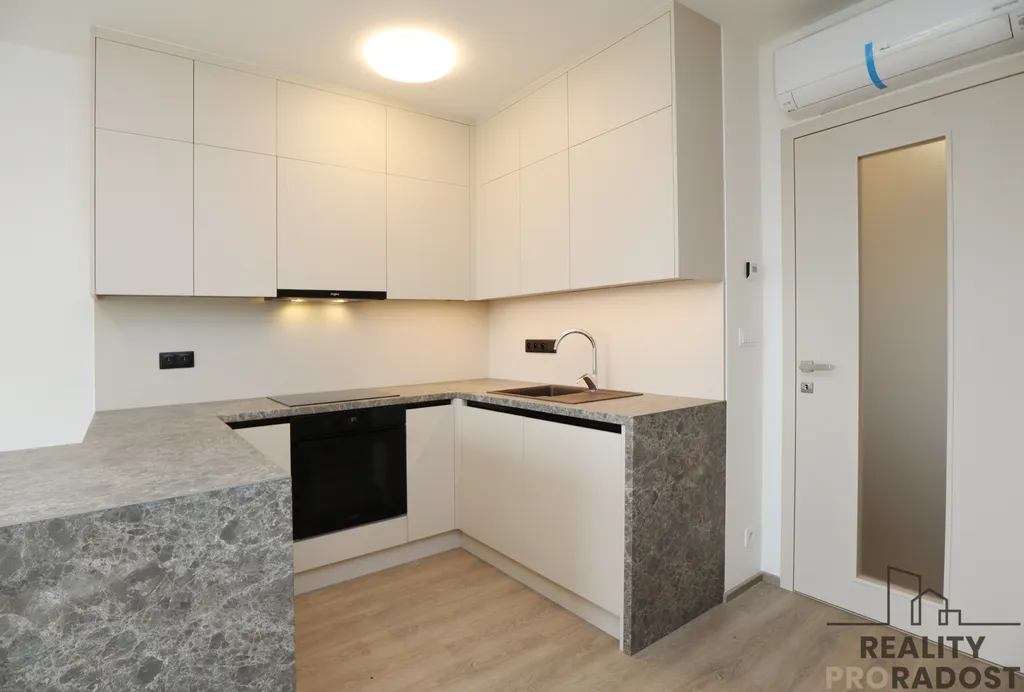 Moderní kuchyňská linka je vybavena elektrickou troubou, varnou deskou, lednicí s mrazákem, myčkou a mikrovlnkou. Kuchyně poskytuje dostatek úložného a pracovního prostoru. Z pokoje se vchází na balkon, který je orientovaný na jižní stranu.