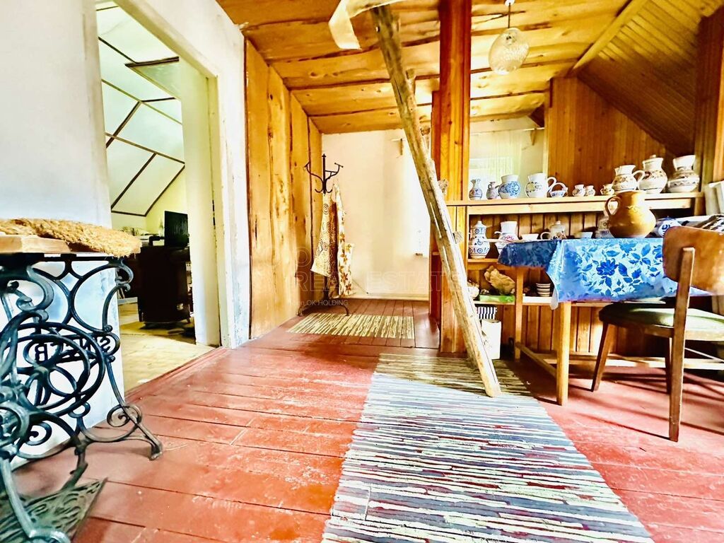 V prvním patře navazuje na pokoj veranda. Topení je zajištěno několika kamny na tuhá paliva v celém domě.