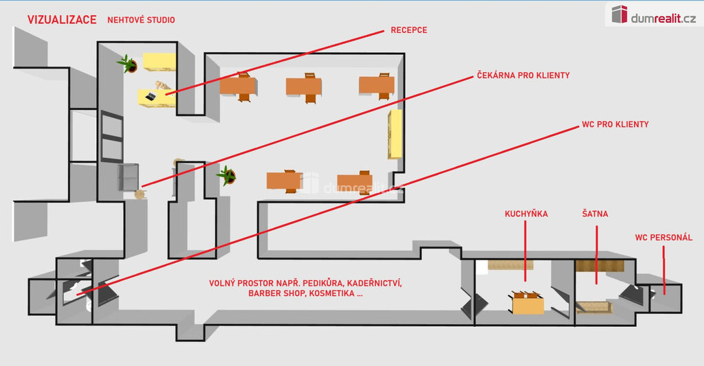 Dumrealit.cz Vám zprostředkuje pronájem komerčního prostoru 93m² v suterénu hl. nádraží Brno, spojka mezi obchodním centrem Vaňkovka a centrem města Brna. Nabízený prostor má celkem rozlohu 93m², rozdělen ve dvou propojených prostorech 51m² a 42m². Sociální zázemí (WC) se nachází v menším prostoru, ale dá se rozšířit a vytvořit i kuchyňku nebo zázemí dle požadavků nájemníka. Jedná se o prostor, kde denně projde cca 140.000 lidí. Jednotka je aktuálně kolaudována jako obchod, ale není problém provést rekolaudaci na jiný záměr podnikání (nehtové studio, manikúra/pedikúra, kadeřnictví, kosmetika, lehký gastro provoz...aj.). Nabízený prostor bude připraven vyklizený, vymalovaný pro nového nájemníka k 1.3.2026. Zásobování je možné z parkoviště pošty. Možno pronájmu parkovacího místa.