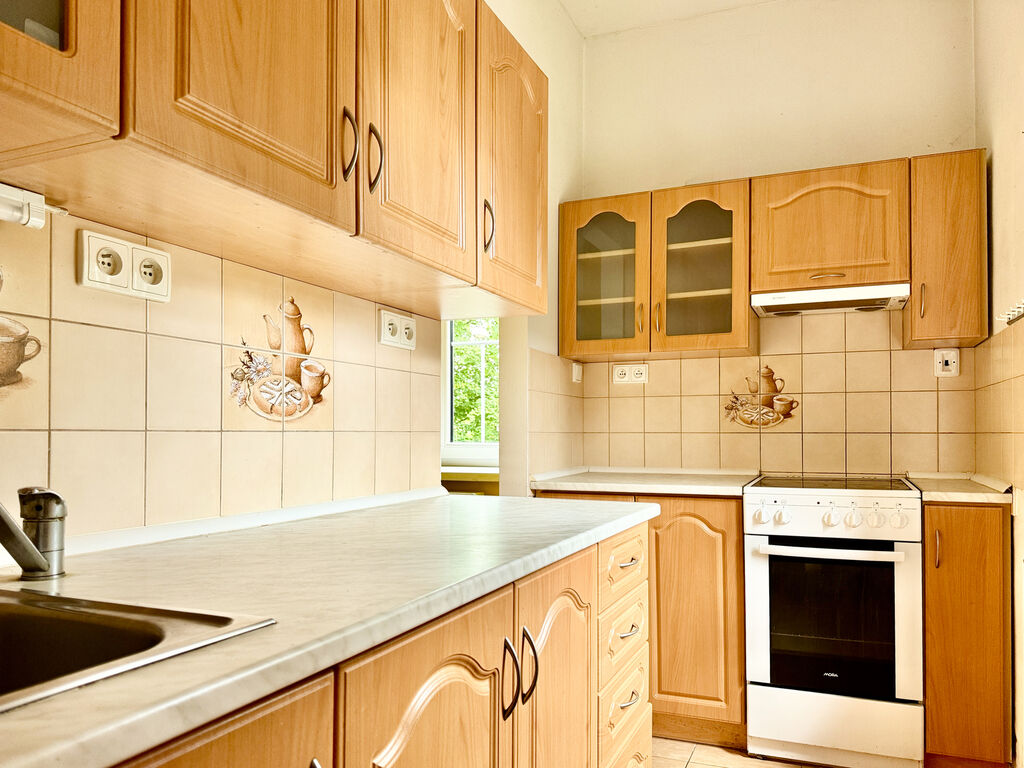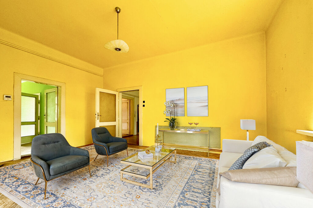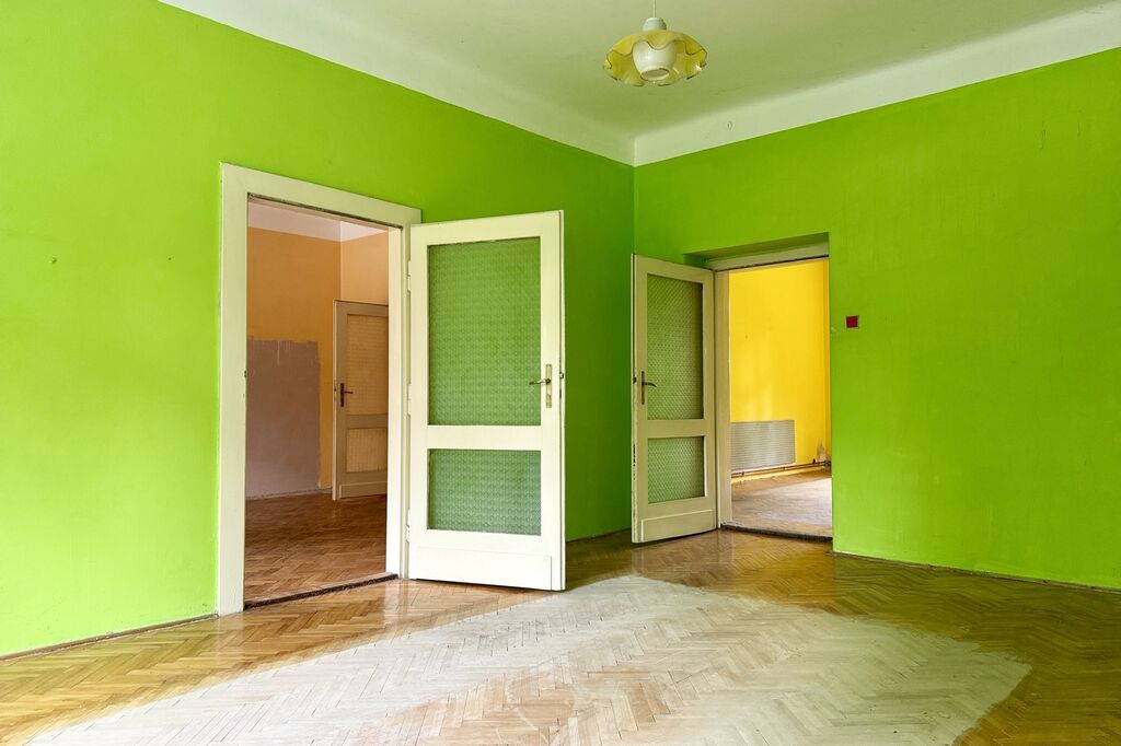 Byt je ve větší části v původním stavu, ale již došlo k rekonstrukci koupelny a kuchyně, částečné výměně elektroinstalace a instalaci plastových oken. V obytných místnostech jsou zachovalé dřevěné parkety, které lze renovovat.