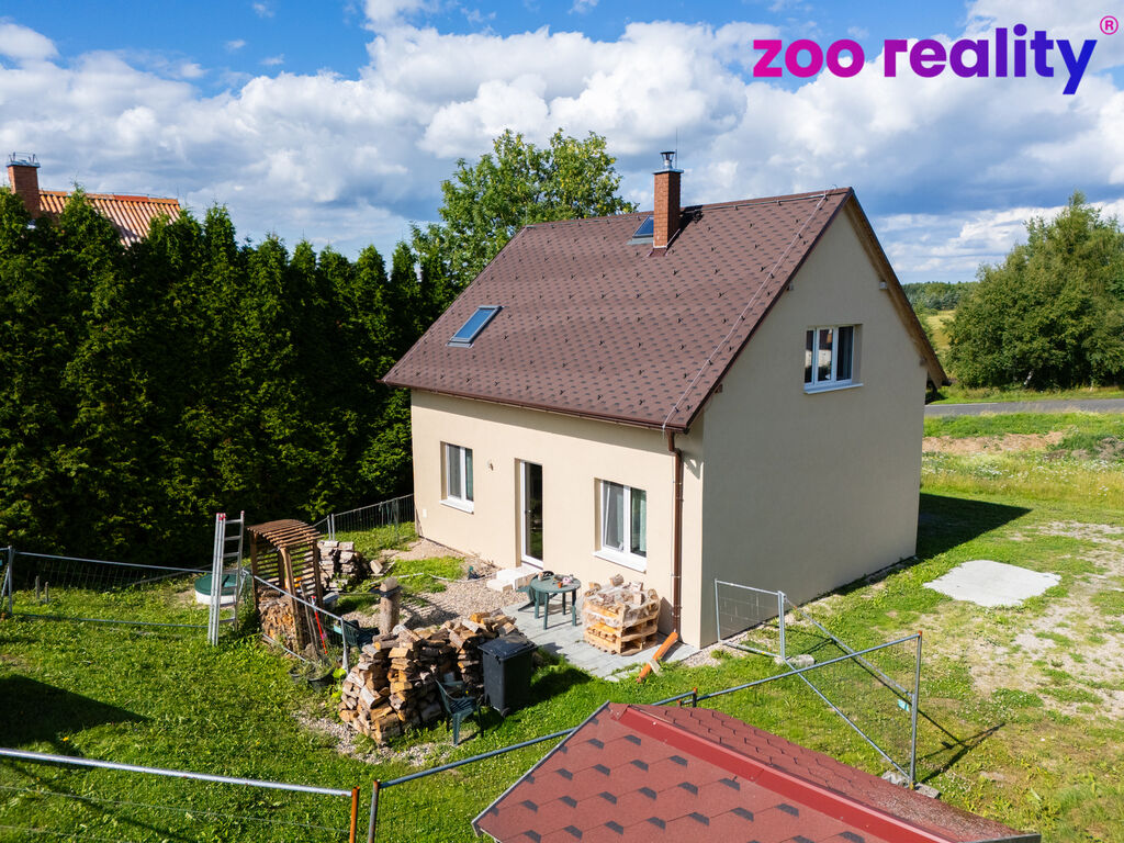 V přízemí najdeme vstupní předsíň, ložnici, koupelnu s toaletou, rohovou vanou a dostatečným prostorem pro pračku a sušičku, dále pak obývací pokoj spojený s kuchyňským koutem a vstupem na zahradu, který je ideální pro rodinné posezení a trávení volného času. V patře pak je myšleno na další koupelnu, kterou si můžete obložit dle vlastního vkusu (nabízíme foto s vizualizací) a dále jsou tu dva samostatné pokoje. Vytápění domu je řešeno elektrickými panely a krbovými kamny na dřevo s výměníkem, které zajistí příjemné teplo během chladných měsíců, ohřev vody řešen elektrickým bojlerem. O odpadní vodu se postará samostatná čistička.