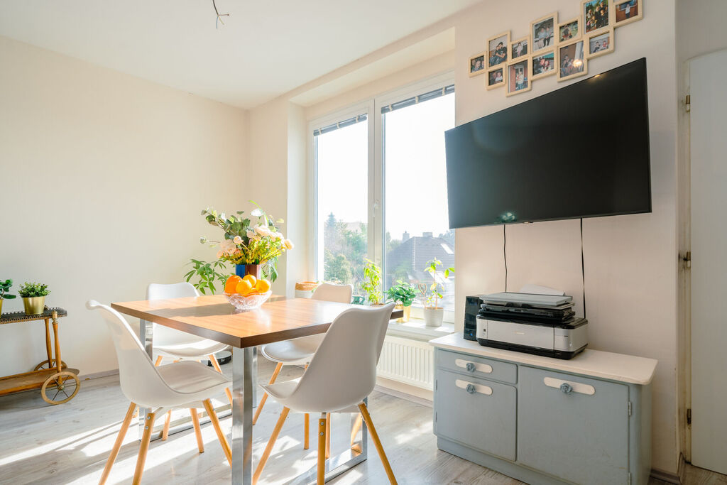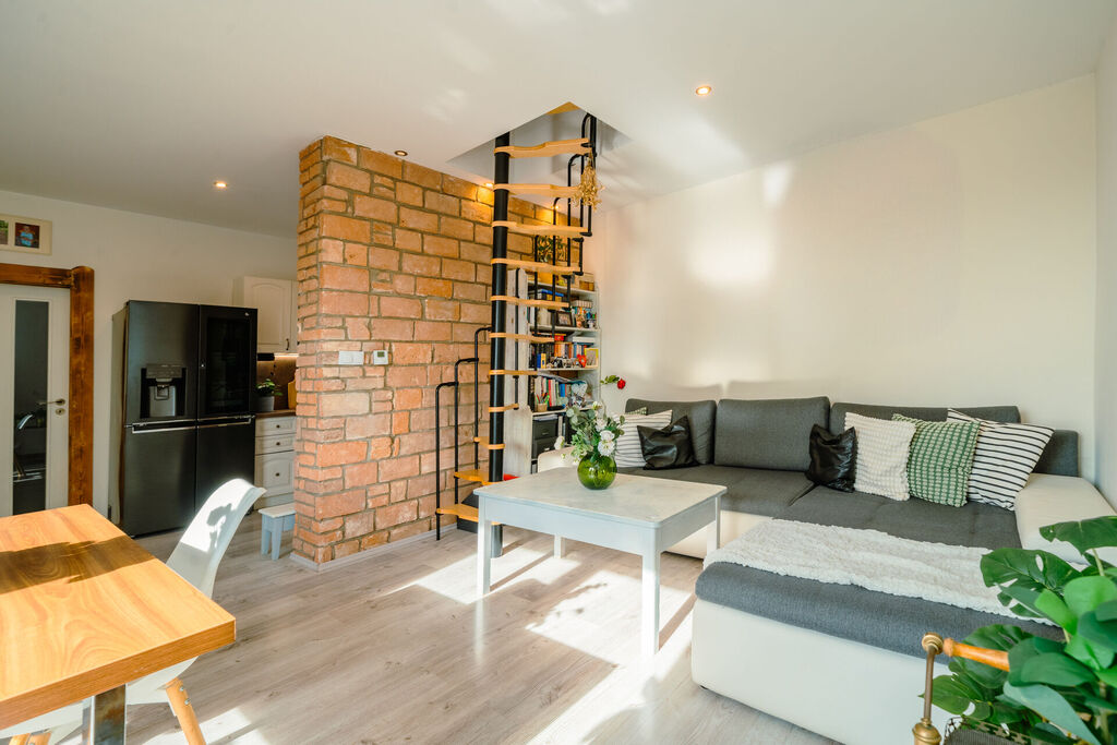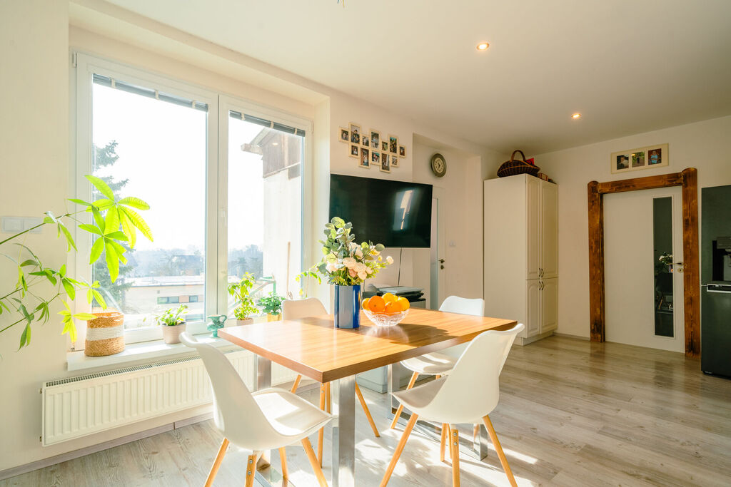 Hledáte útulné bydlení v blízkosti Prahy, které bude poskytovat klidné zázemí pro Vaši rodinu? Nabízíme Vám ke koupi rodinný dům 4kk s terasou, zahradou a krásným výhledem do okolí v obci Máslovice, okr. Praha východ. Dům má velmi praktické dispozice o celkové ploše kolem 100 m2 a pozemkem 395 m2. V přízemí domu je obývací prostor s jídelnou, který je propojený s kuchyňským koutem. Ten je vybaven kuchyňskou linkou se spotřebiči (varná deska, trouba, myčka nádobí, mikrovlnná trouba). Dále je zde ložnice, koupelna s vanou a toaletou, vstupní chodba. V podkroví domu jsou dva samostatné pokoje. Dům prošel v nedávné době vnitřní rekonstrukcí, během které bylo vybudované nové plynové topení (kotel Buderus), nové rozvody elektřiny, vody, podlahové krytiny, okna, dveře, obytné místnosti v podkroví domu, izolace střechy foukaným polystyrenem, nový septik. Před domem je k dispozici terasa, mírně svažitá zahrada a dva velmi prostorné sklepy s rozlohou cca 50 m2 a především prostor na vybudování parkovacího místa. Dům nyní není zateplený, bez nové fasády, energetický štítek se nyní připravuje, uvedena je tedy hodnota G. V tuto chvíli je dům připojen na elektřinu, zaveden plyn, vodovod, kanalizace v přípravě, septik. Obec Máslovice se nachází pouhých 7 km severně od okraje Prahy a je součástí přírodního parku Dolní Povltaví, což skýtá možnost využití krásného přírodního bohatství a klidného bydlení. Pokud zmiňujeme obec Máslovice, tak musí zaznít, že je zde velmi oblíbené pekařství a nově vznikající bistro. Kompletní zázemí a občanská vybavenost je v blízké obci Klecany. Autobus jede přímý až k metru Kobylisy. Pro bližší informace mě kontaktujte a rádi vám umožníme osobní prohlídku domu.