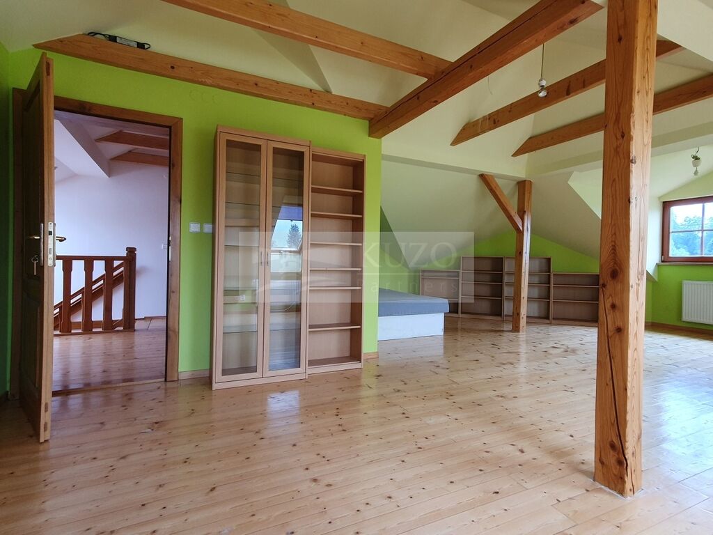 Prostorný dům stojí na velkorysém pozemku 1150 m2. Je samostatný, dvoupodlažní, o dispozici 6+kk, velikosti cca 252,5 m2 + terasa + garáž 33 m2. Nachází se v klidné části obce Kunice - Vidovice, okres Praha - Východ, v ulici Járy Cimrmana. Součástí pozemku je krásná, udržovaná zahrada o velikosti 955 m2. Orientace domu je na slunný západ - 5 pokojů, terasa je na jih, kuchyně, spíž a koupelny jsou na sever a 1 ložnice je na východ. V přízemí domu se nachází vstupní chodba, obývací pokoj s jídelnou, kuchyně, prostorná spíž, 3 neprůchozí ložnice, hlavní koupelna s umývadlem, rohovou vanou i sprchovým koutem a samostatné WC. V patře jsou 2 velké samostatné pokoje - jeden se vstupem do vlastní samostatné šatny a do vlastní koupelny (vana, umývadlo, WC, pisoár) a druhý prostorný pokoj se vstupem do samostatné šatny.