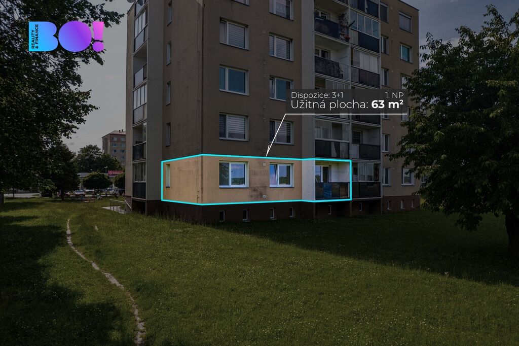 Nabízíme k prodeji bytovou jednotku o dispozici 3+1 s lodžií, nacházející se v 1. nadzemním podlaží panelového domu na ulici J. Fučíka č.p. 666 v Chropyni. Byt o celkové výměře 63 m² je v osobním vlastnictví a nabízí praktické dispoziční řešení i dostatek úložného prostoru. K bytu náleží také sklepní kóje v suterénu domu.