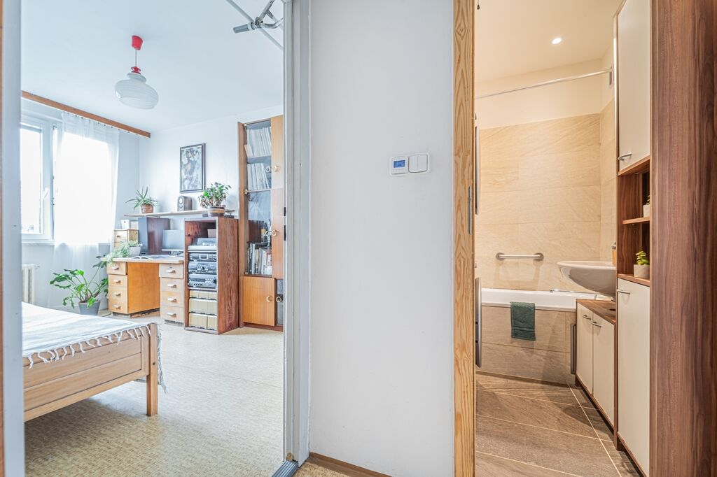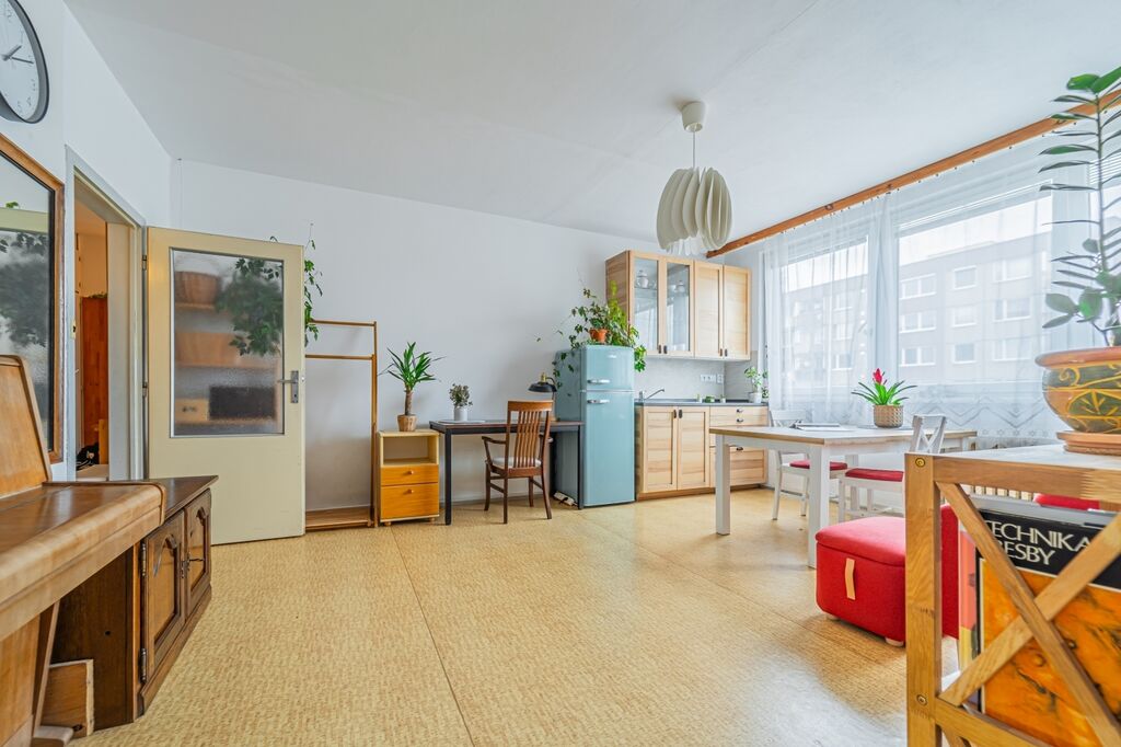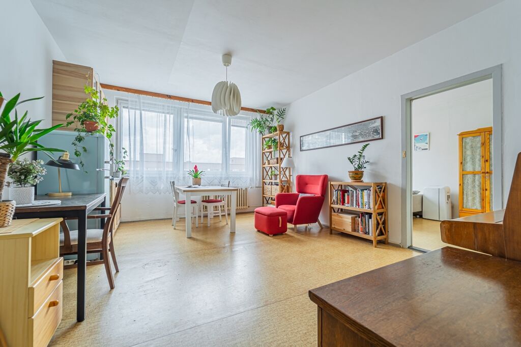Díky vyššímu podlaží nabízí byt krásný výhled do zeleně, a to jak z obývacího pokoje, tak z ložnice. Velká plastová okna jsou osazena izolačními dvojskly, která zajišťují komfortní tepelně i akusticky izolační vlastnosti a poskytují dostatek denního světla. Fond oprav činí 3.337.- Kč.