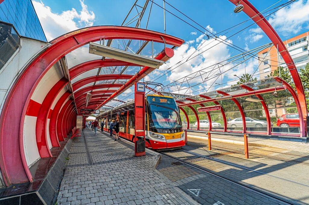 Výborné dopravní spojení zajišťuje tramvajová zastávka Chaplinovo náměstí (linky 4, 5, 12, 20 a noční linka 94), která umožňuje pohodlné spojení s centrem Prahy.
