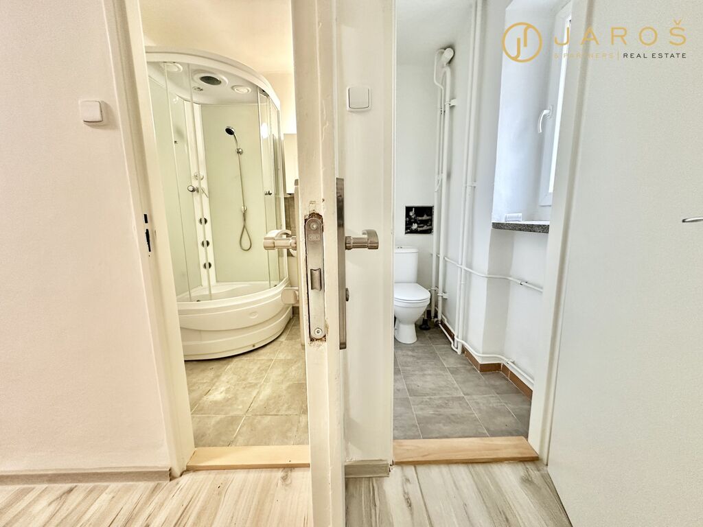 Nainstalovaná nová kuchyňská linka s kombinovaným sporákem a digestoří. V koupelně sprchový kout a místo na pračku.