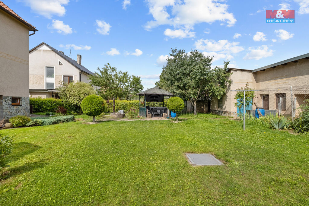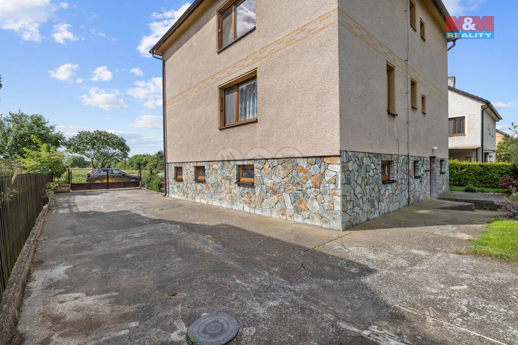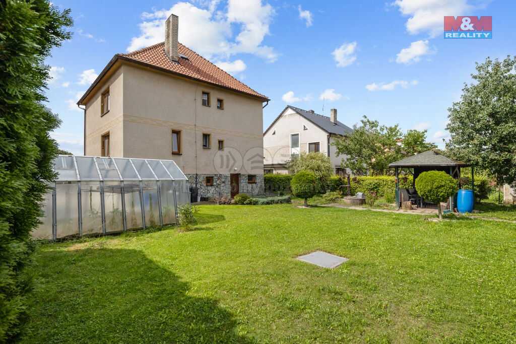 Nabízíme k prodeji prostorný rodinný dům v klidné části obce Kněževes u Rakovníka. Tento cihlový dům je ideální pro dvougenerační bydlení, neboť disponuje dvěma plnohodnotnými bytovými jednotkami 3+1 na každém patře. Celková podlahová plocha činí 140 m². Dům je v původním, avšak velmi dobře udržovaném stavu. Dům také nabízí 3 prostorné balkóny. Vytápění je zajištěno kotlem na tuhá paliva s automatickým podavačem, což zaručuje pohodlí a úsporu času, zatímco teplá voda je ohřívána elektrickým bojlerem. V suterénu se nachází prostorná garáž, sušárna, kotelna a technická místnost. Udržovaná rovinatá zahrada o rozloze 857 m² nabízí skleník, kůlnu s chlívky a je ideálním místem pro relaxaci či zahradničení. Nepropásněte tuto jedinečnou příležitost!
