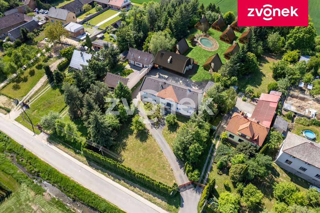 Navazující rozlehlý slunný pozemek o ploše téměř 2 200 m² je dle územního plánu veden jako smíšená obytná venkovská plocha, což rozšiřuje možnosti jeho využití.