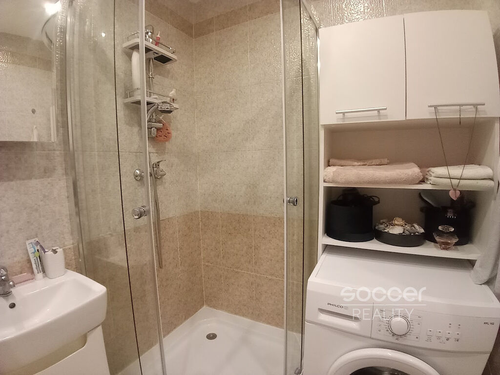 K bytu patří sklad hned vedle vchodových dveří o velikosti 2 m² a navíc i sklepní kóje v suterénu (3 m²), ideální pro kola, lyže a další vybavení. Byt je ve velmi dobrém stavu a vybaven částečně – k dispozici je pračka, lednice, kuchyňská linka s varnou deskou a elektrickou troubou. Ostatní prostory jsou bez nábytku, takže si je můžete zařídit podle svých představ. Koupelna je vybavena sprchovým koutem, vstupní dveře jsou bezpečnostní a o pohodlí se postarají i venkovní předokenní rolety.