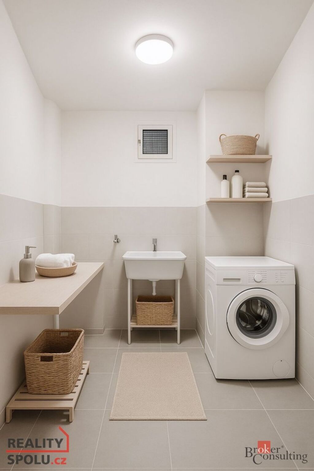Dispozice domu v prvním podlaží jsou 3 technické místnosti, koupelna a toaleta zvlášť, součástí domu je garáž. První patro má dispozici 3+1, druhé patro 2+1 a půdní prostor.