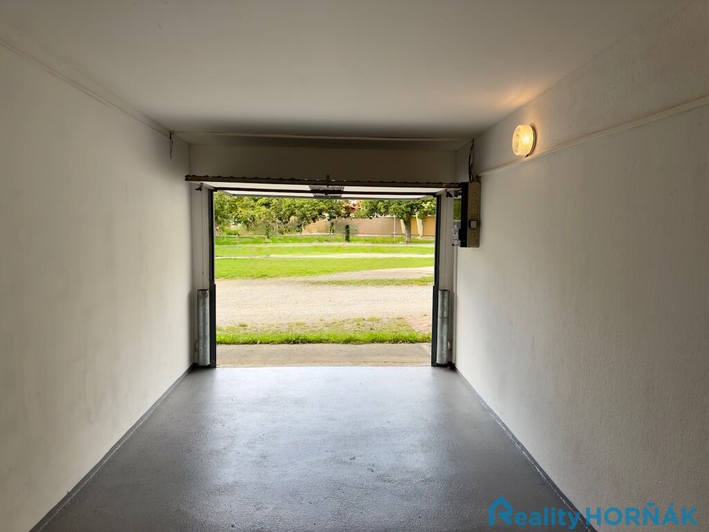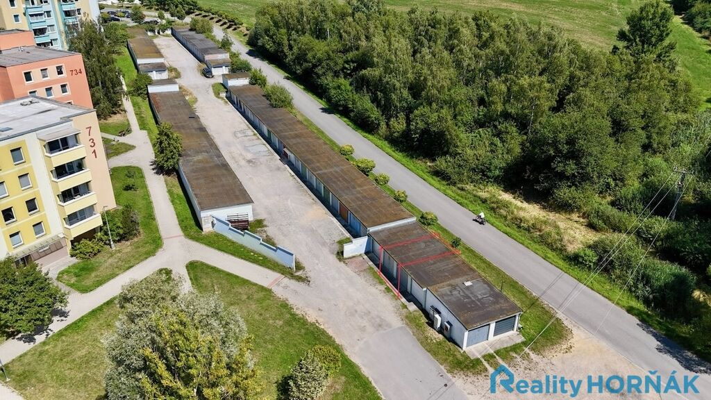 Garáž bez čp/če je vystavěna na vlastní stavební parcele o celkové výměře 20 m2. Čistý půdorysný profil: 6,0 x 2,84 = 17,1 m2. Průjezdný profil vjezdových vrat: šířka 2,40 m, výška 1,91 m. Výška garáže u vjezdu: 1,39 m, výška v zadní části: 2,56 m. Garáž je zastropena betonovými stropními panely, zastřešení je provedeno lepenkovou střešní krytinou. Přístup a příjezd k řadovým garážím je zajištěn po asfaltové obecní komunikaci. Parcela, položená mezi garážemi je v podílovém spoluvlastnictví všech majitelů garáží – současně s koupí garáže tedy kupujete parcelu pod garáží a spoluvlastnický podíl ideální 1/94 vůči celku na této parcele. Vlastnická práva ke garáži nejsou nikým a ničím omezena, předána může být okamžitě.