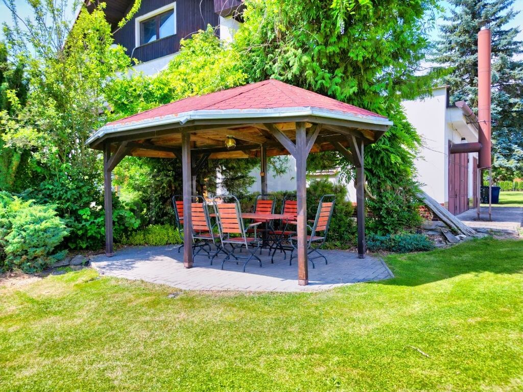 Hosté ocení velký pozemek, udržovaný jako park, krytý bazén, tenisový kurt, pergolu, vlastní příjezdovou komunikaci a dostatek parkovacích míst přímo v areálu. Objekt je v dobrém stavu, poslední částečná rekonstrukce proběhla cca před 15 lety. Přidanou hodnotou je případná možnost vybudování dalších pokojů v podkroví.