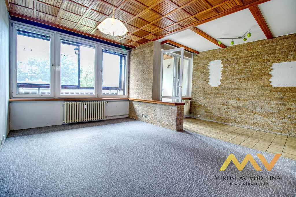 Okna jsou plastová se žaluziemi, yytápění je centrální dálkové z Opatovic, podlahová krytina koberce a dlažba. Dům je částečně zateplený, obklopen zelení, což vytváří klidné prostředí pro bydlení. Díky blízkosti konečné zastávky MHD Pod Strání (linky 23, 24, 27, 28), obchodů, služeb, škol a parků máte vše potřebné doslova na dosah ruky. Parkování před domem je bez poplatků.