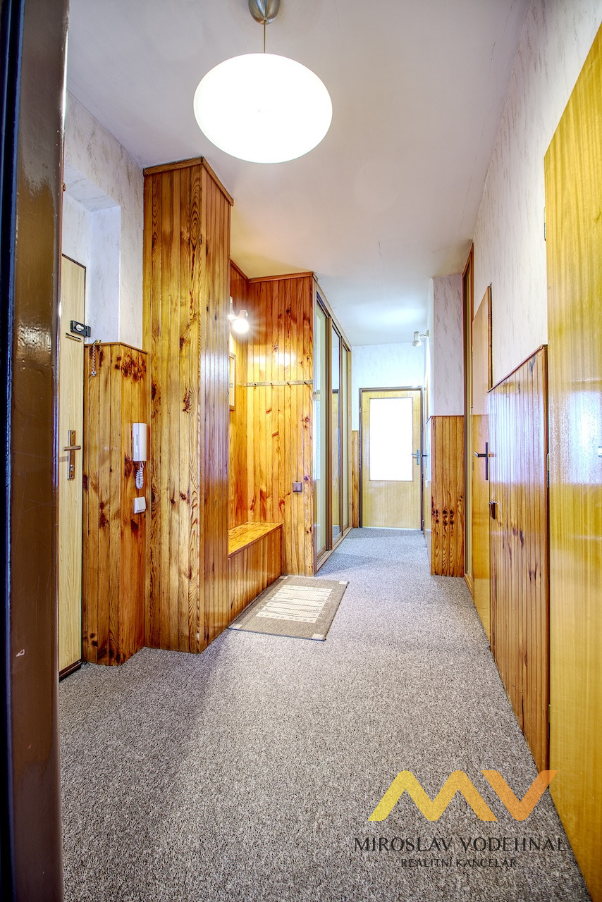 Bytová jednotka disponuje praktickou dispozicí: kuchyň s kuchyňskou linkou vybavenou s el. sporákem a odstavcem par, třemi neprůchozími pokoji, koupelnou s vanou, samostatnou toaletou a předsíní s dostatkem úložného prostoru včetně vestavěný skříní. Výhodou je zasklená lodžie o velikosti 4 m², která poskytuje příjemné místo pro relaxaci s výhledem na okolní zeleň a také zimní zahrada 4m² s hliníkovou konstrukcí oken. Byt je v původním, ale velmi udržovaném stavu s renovacemi v průběhu let. K bytu náleží sklep v suterénu domu a možnost využití společné kolárny.
