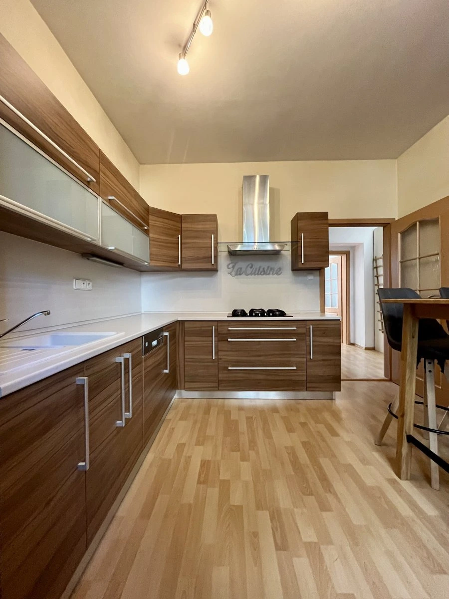 Kuchyně: plně vybavená – plynový sporák s digestoří, elektrická trouba, myčka, mikrovlnná trouba, lednice; navíc praktický kumbál
