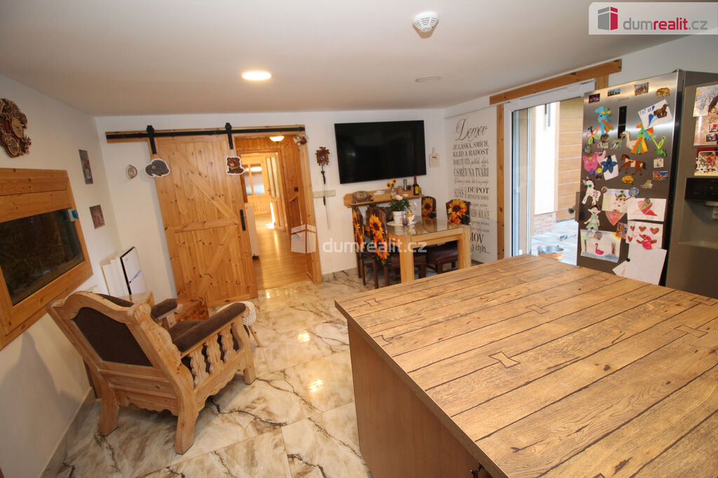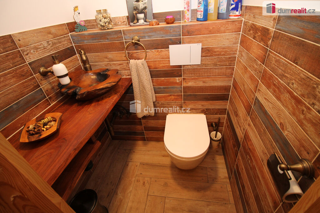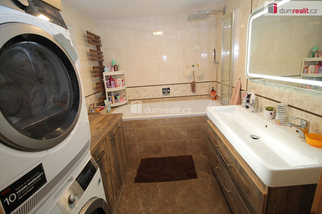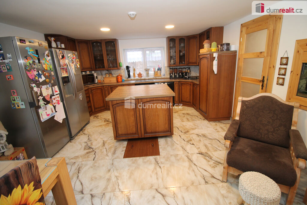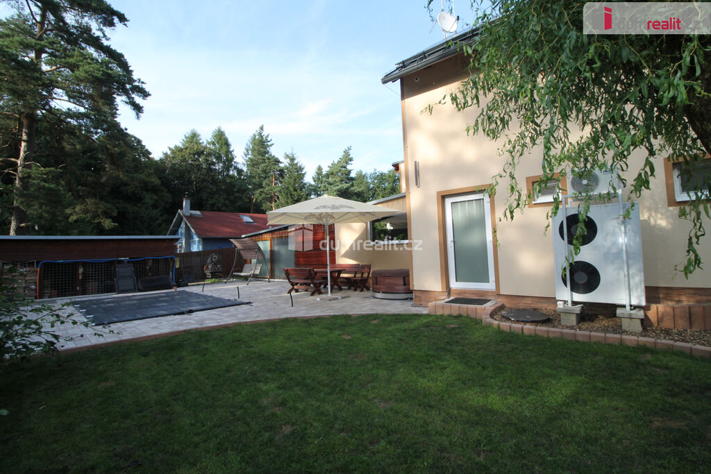 Dumrealit.cz Vám zprostředkuje koupi mimořádné a vyjímečné nemovitosti, rodinného domu po kompletní rekonstrukci o dispozici 6+1 v Děpoltovicích nedaleko Karlových Varů. Dům obklopuje upravená zahrada o celkové rozloze 629 m² (z čehož 167 m² tvoří zastavěná plocha domu), na které se nachází bazén, terasa, přístavky s úložným prostorem a příslušné technologie. Majitelé během let dům postupně zvelebovali, rekonstrukce zahrnuje kompletně novou elektroinstalaci, vodoinstalaci, štuky, omítky, zdi, koupelny, kuchyni, okna, střechu, krov, podlahy atd.. Okna jsou kvalitní trojskla, ve všech jsou instalované předokenní bezpečnostní rolety a sítě proti hmyzu. Kompletně v celém domě (včetně garáže) je podlahové vytápění, vytápění zajišťuje tepelné čerpadlo a solární panely na střeše s tím, že přebytky se prodávající do sítě což činí dům téměř beznákladový (náklady cca 20.000,-Kč ročně). Pro ohřev teplé vody slouží velkokapacitní nádoba na ohřev teplé vody. Dům je samozřejmě zateplený (20 cm vata na fasádě, dále pod střechu a na podlaze půdy je foukaná izolace), kolem domu je hydroizolace. V obývacím pokoji/zimní zahradě je navíc příprava na krbová kamna. Voda je ze studny (9 m), dále z vrtu (18 m), dále si majitel nechá vozit cisternu s pitnou vodou, která se přečerpá do nádrže zabudované na zahradě. Zdroje vody se dají libovolně přepínat. Odpad je do ČOV (čističky odpadních vod) a dále se již čistá voda odvádí z domu skrze vsak. V celém domě je klimatizace a ozónová čistička vzduchu, která pohlcuje jak prach, tak zvířecí chlupy a vypouští kladné ionty. Všechen nábytek v domě je na míru od truhláře (většina zůstává a je součástí ceny). V přízemí je obývací pokoj, herna, kuchyně s jídelním koutem (pod kuchyní je sklep), pracovna, šatna, koupelna s vanou, samostatné WC s umyvadlem, předsíň s vestavěnými skříněmi, chodba se schodištěm a technická místnost s WC. Dále je z chodby přístupná obrovská garáž s umyvadlem, kde také zůstávají prostorné vestavěné skříně a kudy se dá také projít zadem na zahradu. Nad garáží je další půda. K dispozici je nabíječka na elektroauto. Terasa je přístupná jak z obýváku tak z technické místnosti, kde je k dispozici třetí toaleta. V prvním patře jsou 2 dětské pokoje, další koupelna se sprchou a toaletou, rodičovská ložnice se vstupem na horní terasu a vstup na půdu, kde by mohly vzniknout další dva pokoje. V objektu je kamerový systém a dům je napojen na pult bezpečnostní ochrany. Dům se nachází ve velmi hezké lokalitě blízko Děpoltovického rybníku, kde je možné jezdit na koních, je zde restaurace, hotel, hospůdka, pravidelně se pořádají společenské akce (hlavně v létě) avšak je zde klid a příjemná atmosféra. Do pár minut jízdy autem jsou Karlovy Vary, kde je veškerá občanská vybavenost včetně bank, úřadů a restaurací. K dispozici je OC Varyáda (10 km), OC Fontána, KV Aréna. Cena je včetně provize RK. Ev. číslo: 652105.