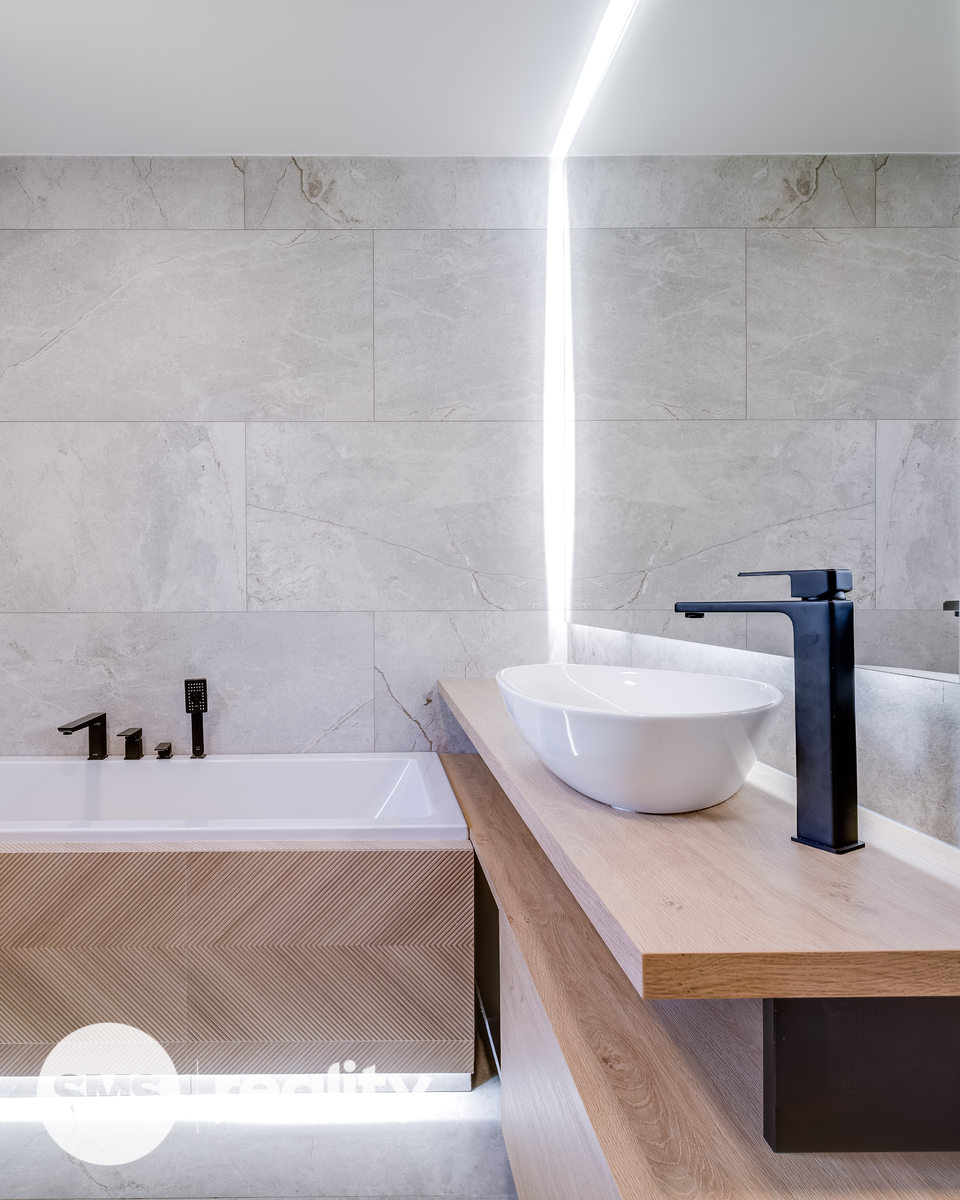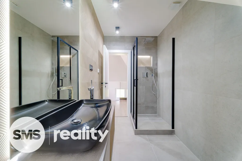 Rekonstrukce byla původně připravována pro vlastní bydlení majitele, proto zde naleznete pouze ty nejkvalitnější materiály a precizní detaily: betonové stěrky, luxusní skleněné zábradlí, kamenické rohy, vestavěné prvky na míru a moderní LED osvětlení.