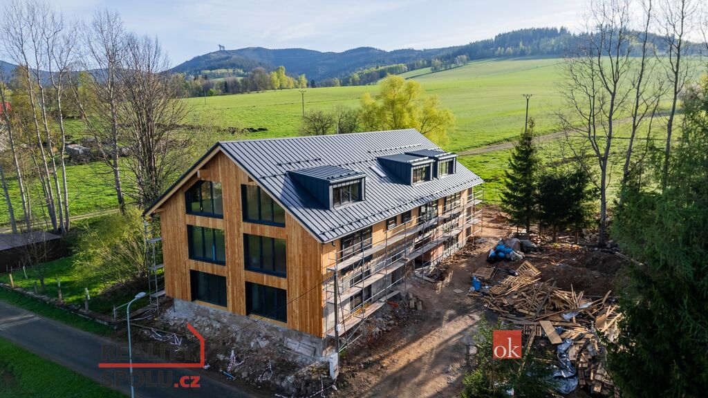Nabízíme ke koupi moderní apartmán 2+kk o podlahové ploše 59,94 m², který vyniká praktickým uspořádáním, světlým interiérem a atraktivní orientací na jih s výhledem na Stezku v oblacích a přilehlé zázemí.