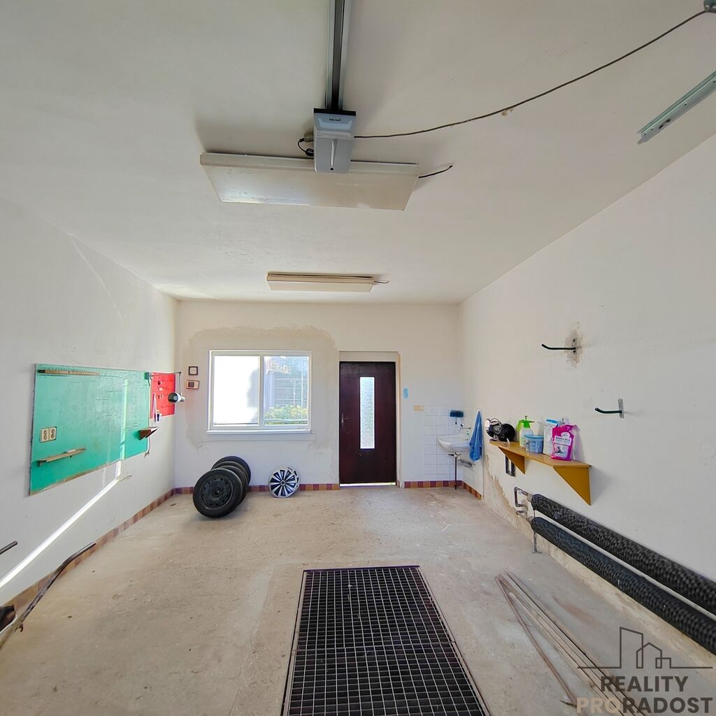 Velkým benefitem je prostorná garáž, kterou lze využít i jako dílnu. Na zahradě se nachází menší zastřešený domek na nářadí a dostatek prostoru pro relax i různé volnočasové aktivity.