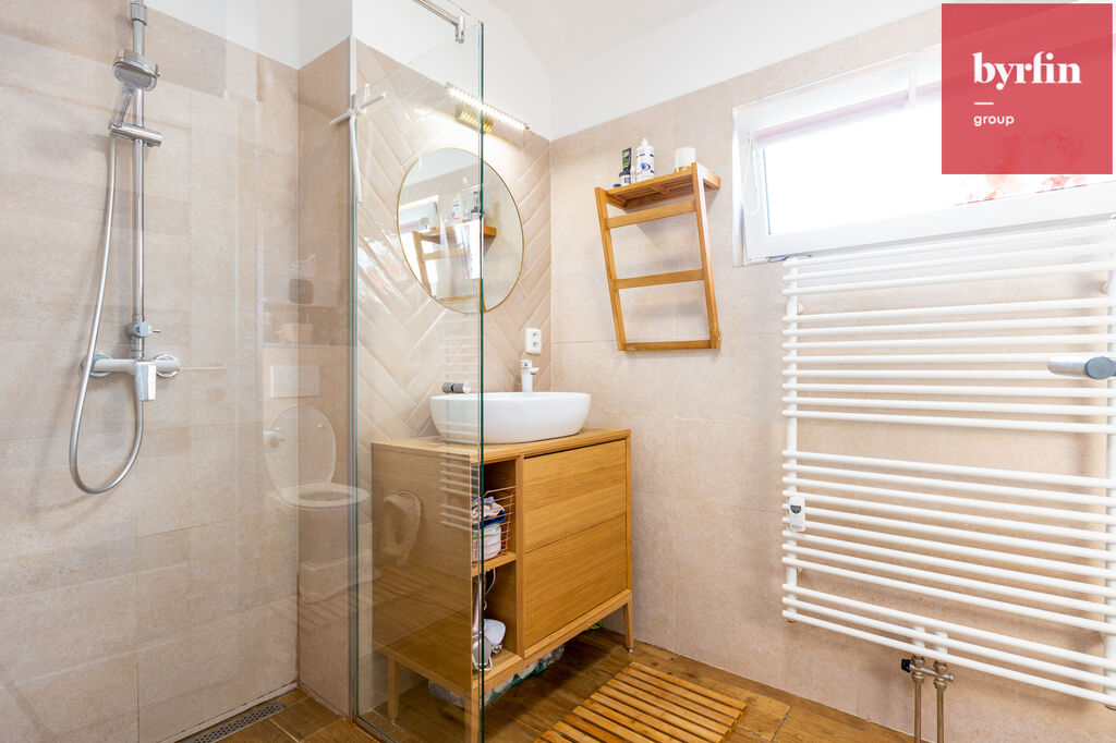 Byt je součástí kompletně revitalizovaného domu s pouhými 6 byty (PENB C), takže tu najdete klid, soukromí a příjemnou atmosféru. Kuchyňská linka je plně vybavena spotřebiči, v ložnici najdete vestavnou šatní skříň a díky chytře řešené dispozici má každý centimetr své místo. Slunce sem svítí po celý den a terasa se zahradou jsou ideálním místem pro ranní kávu, odpolední relax i večerní posezení s přáteli.