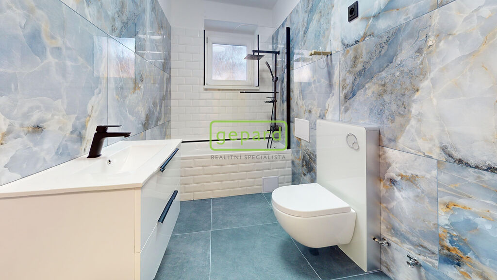Rekonstrukce proběhla tento rok a zahrnuje mimo jiné novou kuchyňskou linku, spotřebiče včetně ledničky s mrazákem. Zcela nová koupelna s luxusním nádechem, který Vás neomrzí a připraveno místo na pračku či případně i sušičku (nad sebe, 60 x 60 cm - není součástí vybavení). V obývacím pokoji je zcela nový gauč. Velikou výhodou je též podlahové topení v celém bytě na elektřinu.