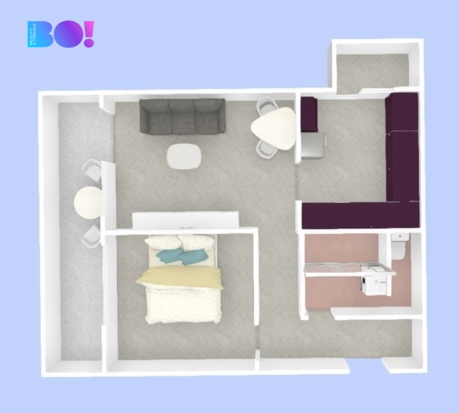 Vnitřní výměra všech místností je 45,3 m², k tomu jsou využívány 2 zasklené balkony o výměře 9,8 m². Ten větší orientovaný na západ navazuje podél obývacího pokoje i ložnice a můžete si na něm krásně vychutnat kafe, přečíst knížku nebo jen tak odpočívat. Ten menší orientovaný na sever je přístupný z kuchyně a slouží třeba k pěstování bylinek nebo zeleniny.