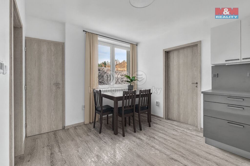 Nabízíme k prodeji atraktivní atypický byt 2+1, o ploše 88 m², situovaný v centru obce Jimramov, přímo na historickém náměstí. Byt se nachází v prvním podlaží smíšené konstrukce a prošel rekonstrukcí. Dispozice zahrnuje vstupní chodbu, prostornou kuchyň s jídelním koutem a spíží, útulný obývací pokoj, ložnici s přístupem na balkón, koupelnu s vanou, samostatné WC a praktickou komoru. Moderní podlahové vytápění zajišťuje komfortní bydlení. Kuchyňská linka včetně spotřebičů je součástí prodeje. Byt má podíl na společné zahrádce a vyhrazené parkovací místo. Jimramov nabízí bohatou občanskou vybavenost. Možnost financování hypotékou. Doporučujeme prohlídku!