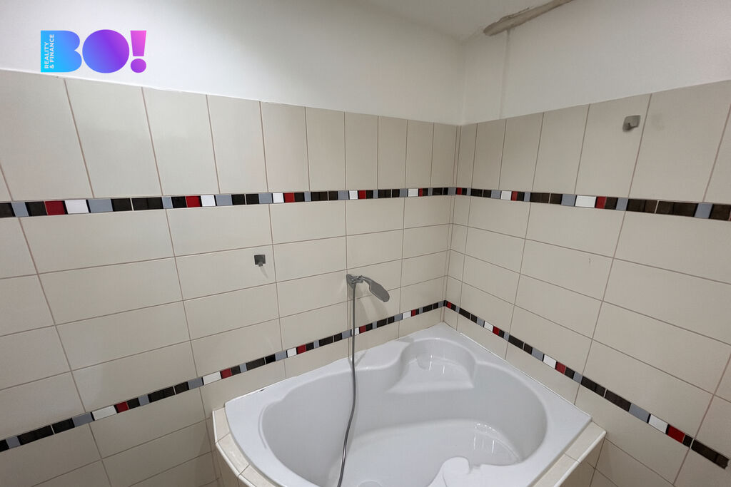 Druhý byt je také částečně vybavený kuchynským koutem, samostatnou koupelnou s rohovou vanou a WC.