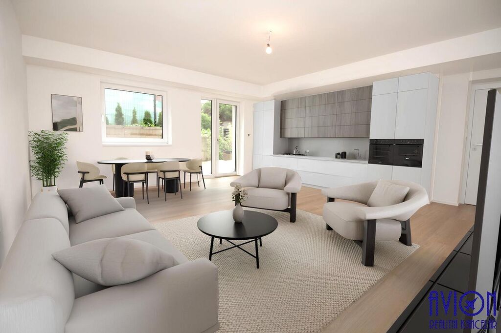 Prodej nově vybudovaného moderního bytu s dispozicí 3+kk, podlahovou plochou 100 m2, venkovní terasou (předzahrádkou) 45 m2, a venkovním parkovacím stáním, na unikátním místě na konci slepé ulice v sousedství lesa. Byt se nachází v přízemí energeticky úsporného domu se šesti bytovými jednotkami v ulici 5. máje, Praha 5 - Stodůlky (rozhraní Motol/Stodůlky), s dobrou dostupností.